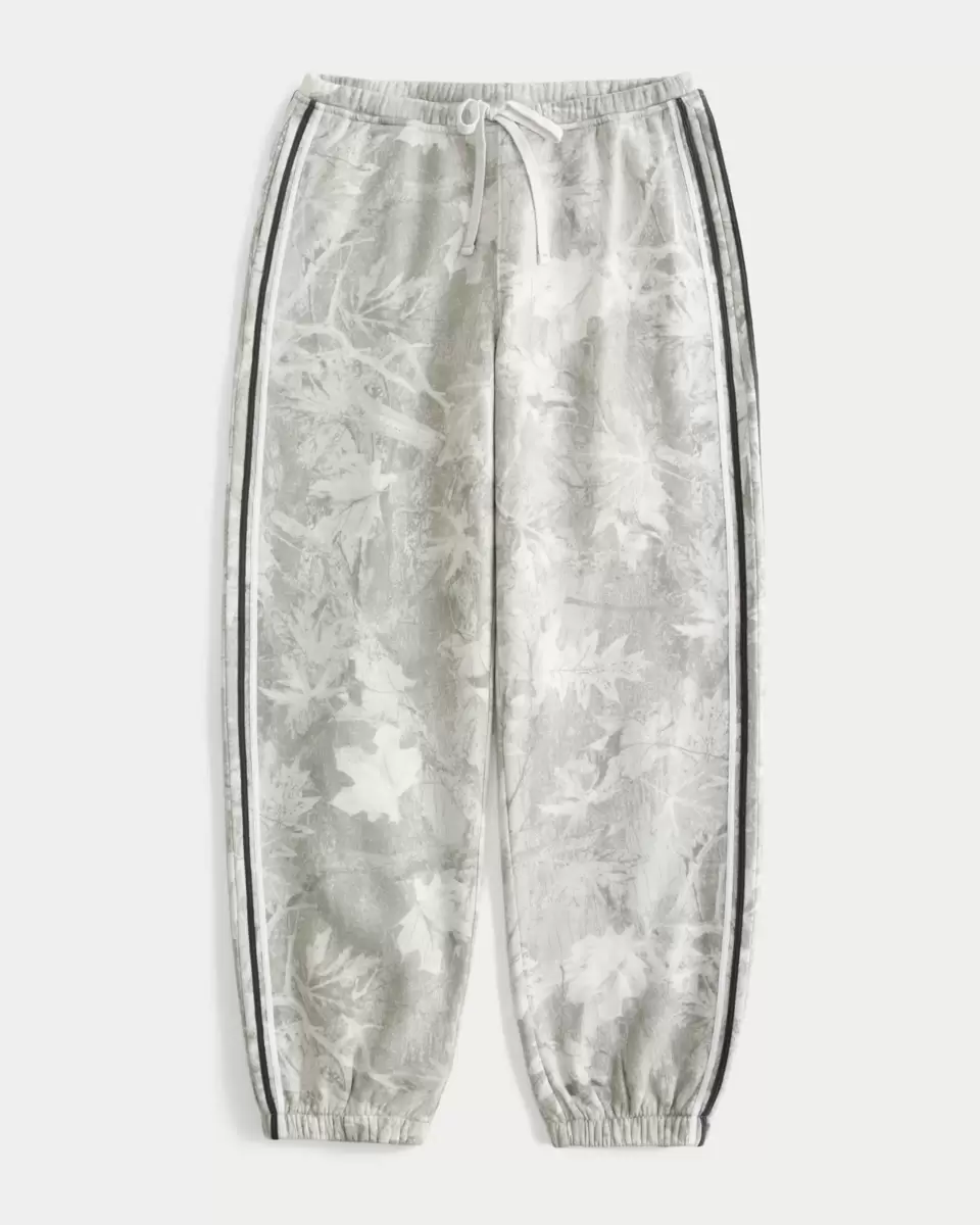 Supermjuka joggingbyxor i fleece med ett heltäckande camo-tryck och sidränder. Lågt dragsko i midjan, baggy ben, dragsko i midjan, bandfållar, fickor. Importerad.