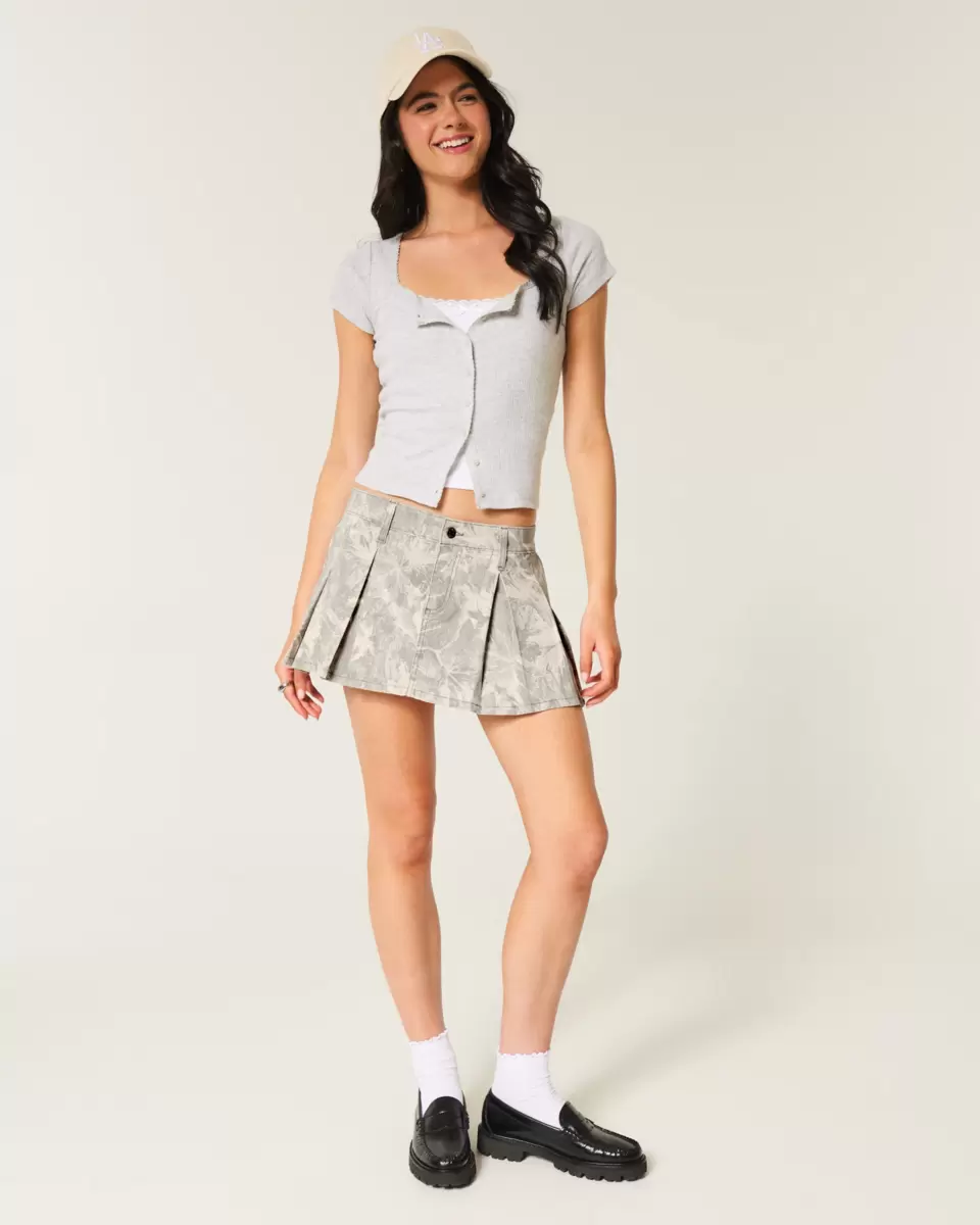 En söt byxa i twill, designad med en låg midja och veck. Heltäckande camomönster, dolda stickade shorts. Importerad.
