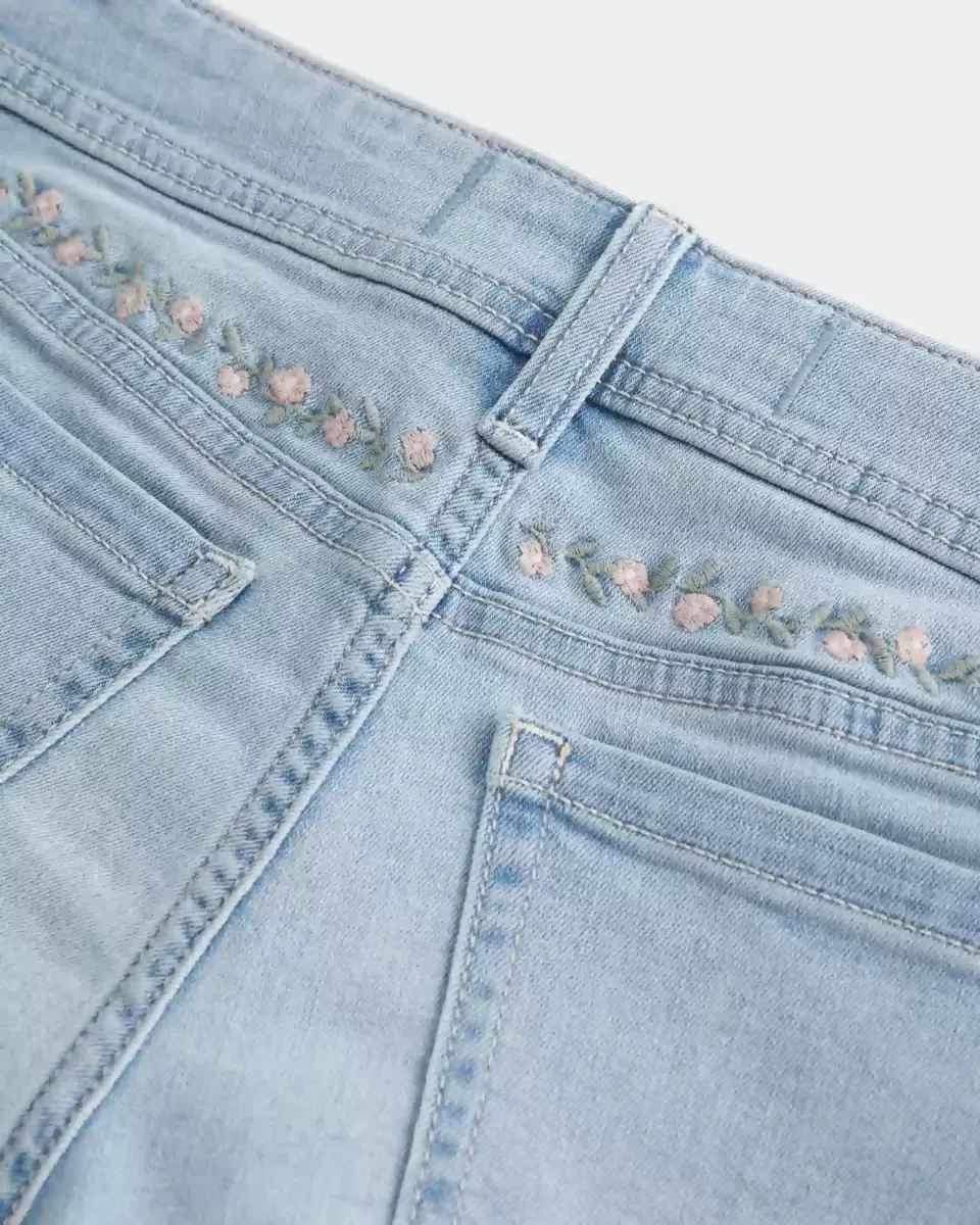 Söta och sköna jeansshorts i lätt tvätt, designade med kurvig låg midja och kort passform. Blekande, blommigt broderi på höger myntficka och baktill. Importerad.