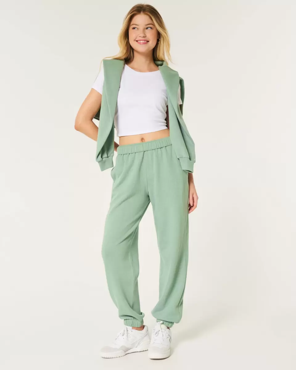 Supermjuka joggingbyxor i mysigt fleecetyg, designade med avslappnade ben, bandad midja och bandfållar. Fickor, broderad logotyp ikon. Importerad.