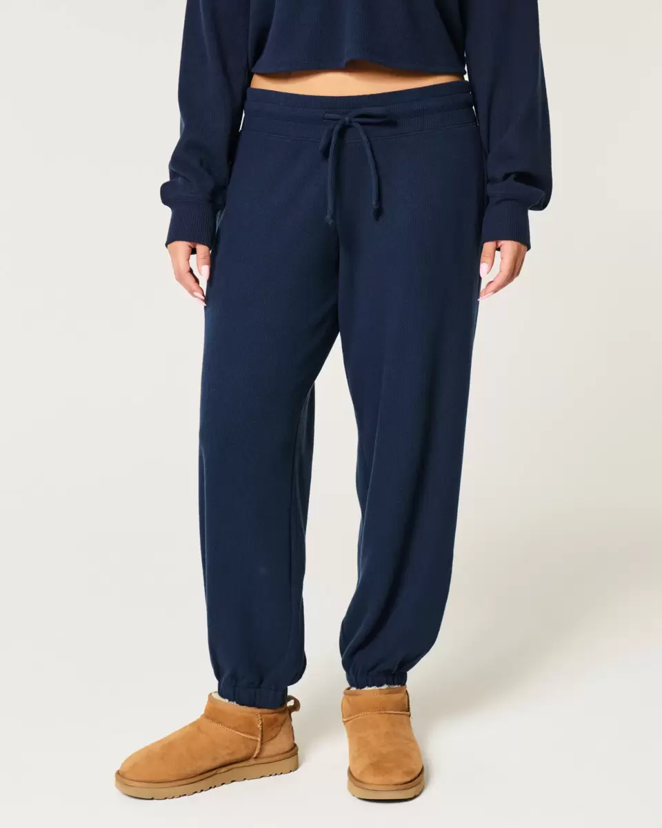 Mysiga och supermjuka joggingbyxor i våffeltyg, designade med avslappnade ben. Dragsko i midjan, fickor, bandfållar. Importerad.