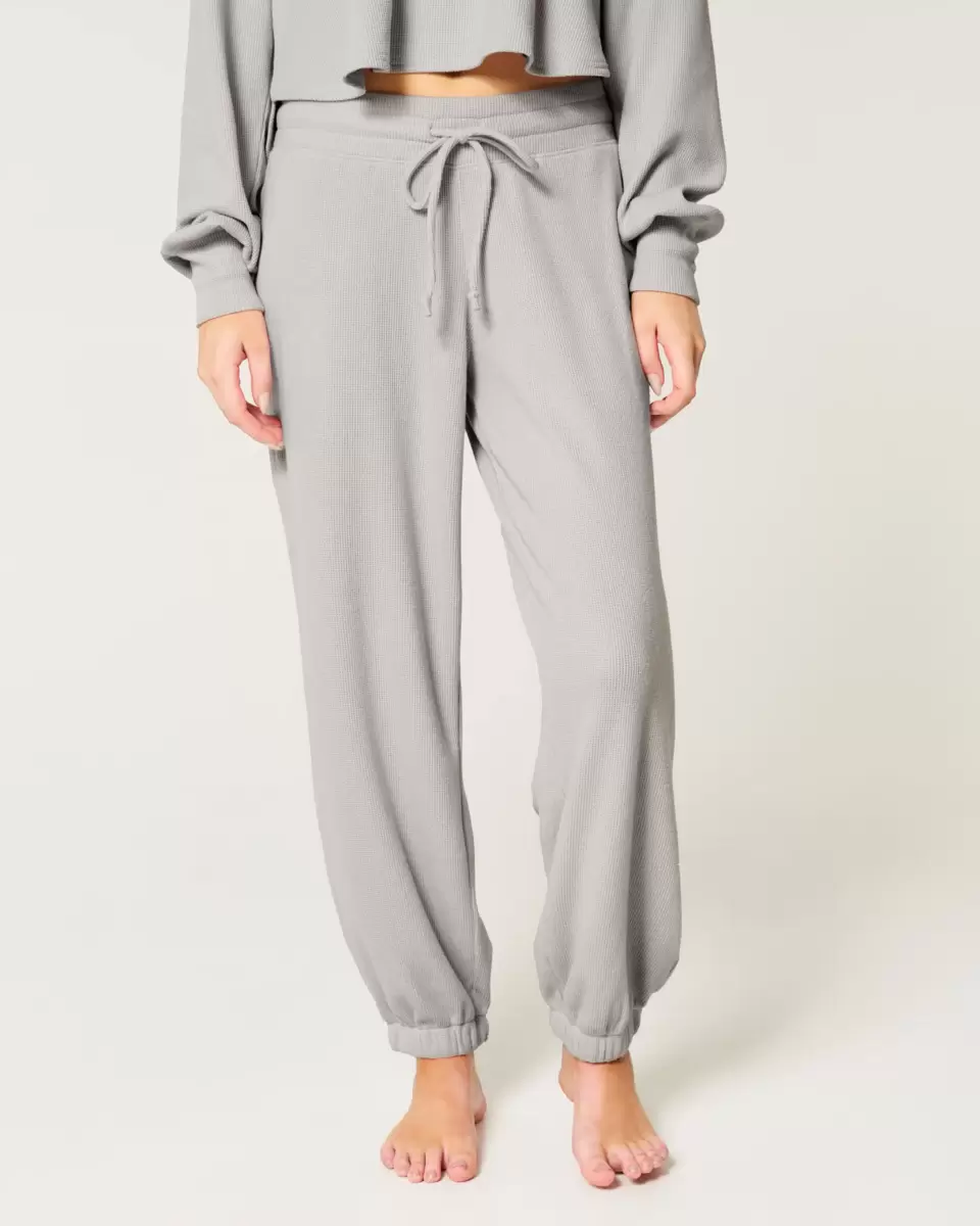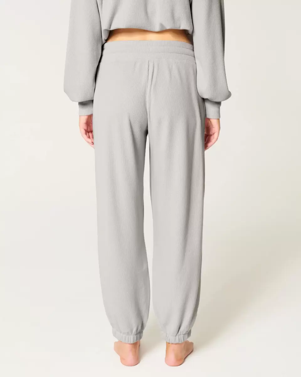 Supermjuka joggingbyxor i mysigt våffeltyg. Dragsko i midjan, bandfållar, fickor.