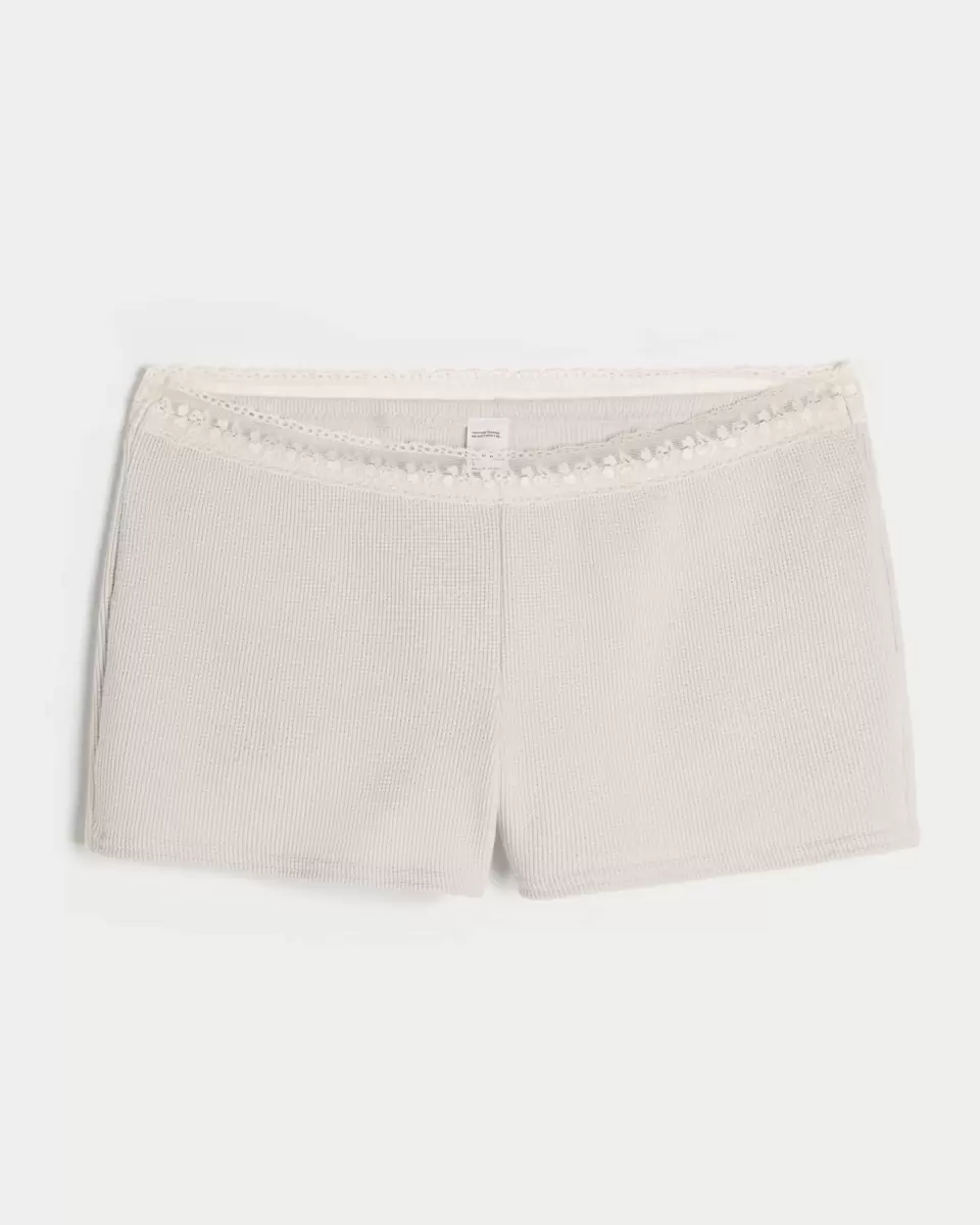 Supermjuka och sköna shorts i våffeltyg med snygg spetskant i midjan. Importerad.