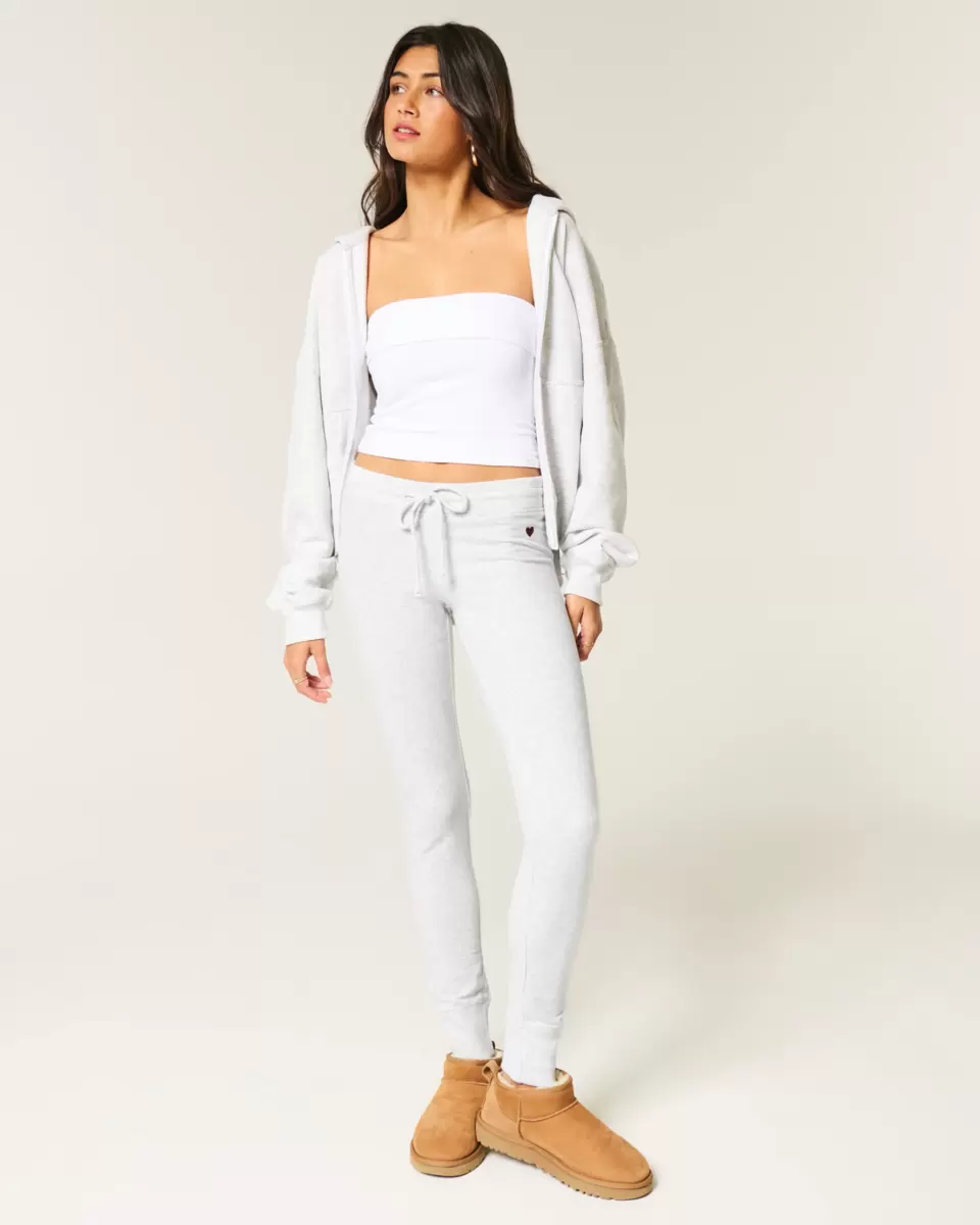 Supermjuka fleeceleggings med en söt hjärtgrafik. Medelhög midja med dragsko, bandfållar. Importerad.