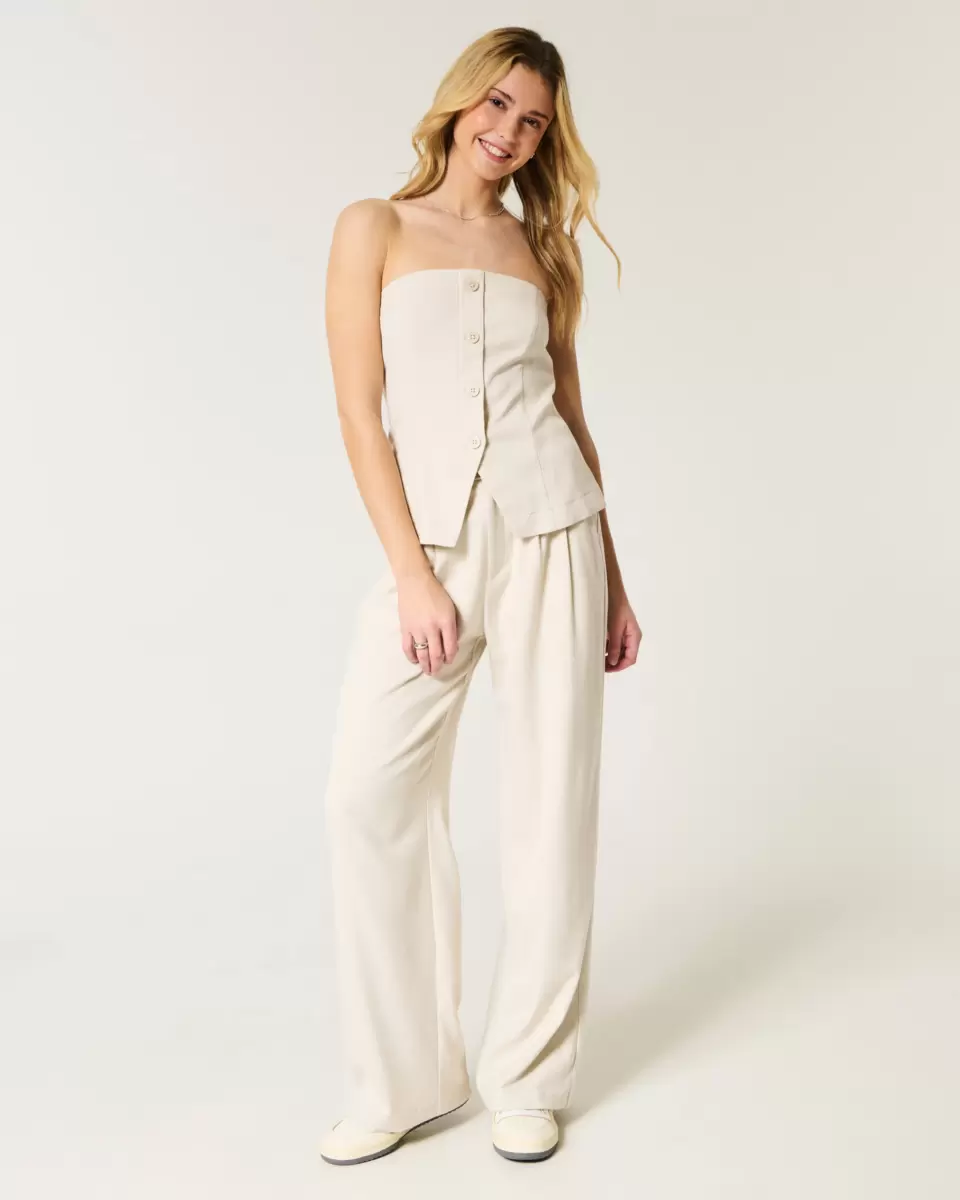 Dina nya favoritbyxor är designade med en smickrande ultrahög midja och bred siluett. Veckad midja för en klassisk skräddarsydd look, fickor. Importerad.