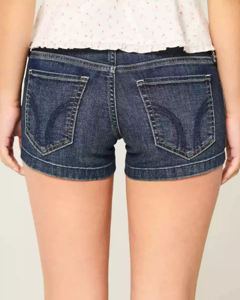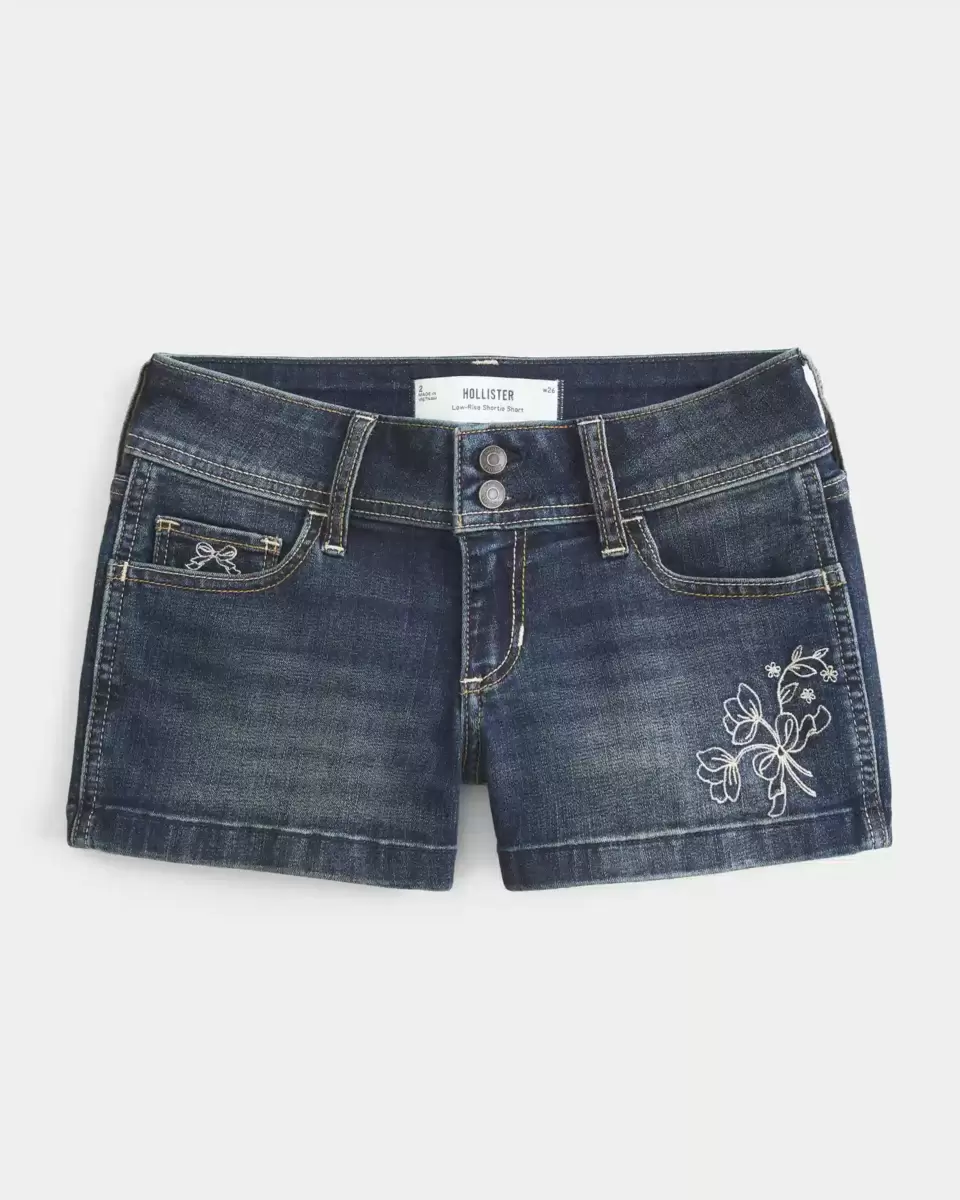 Skäliga shorts i denim i mörk tvätt, med vackra blommiga broderier och en broderad rosettdetalj vid den högra myntfickan. Låg midja, blekning, morrhår. Importerad.