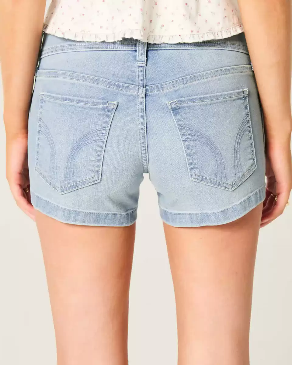 Skäliga shorts i denim i lätt tvätt. Låg midja, blekning, morrhår. Importerad.