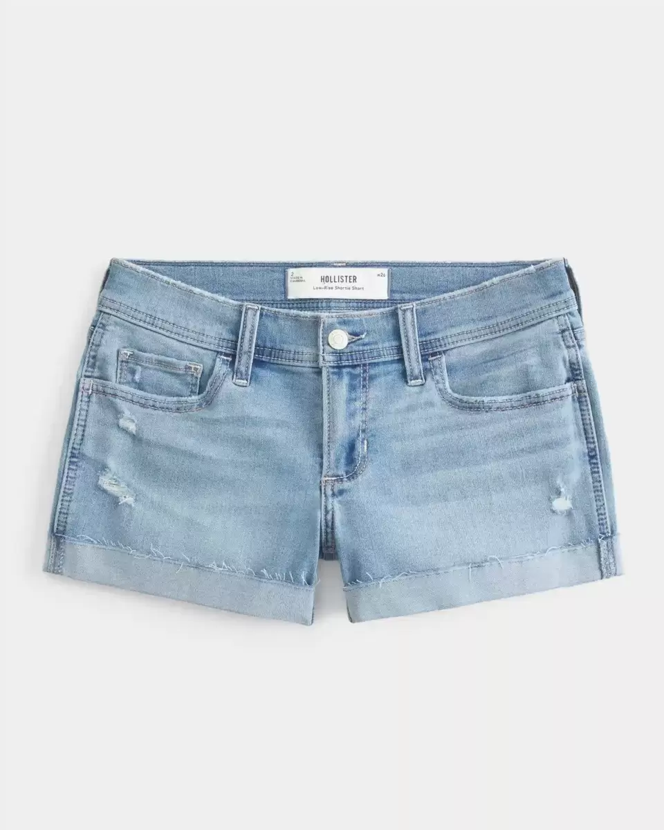 Low-Rise Ripped Light Wash Shortieshorts i denim