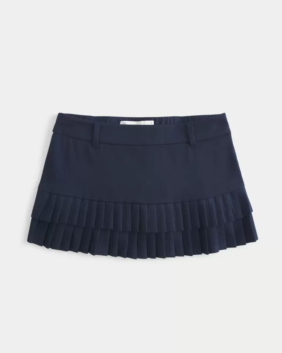 Ett sött minikort med mikroveckad fåll och dolda stickade shorts. Bälteshällor, låg midja. Importerad.