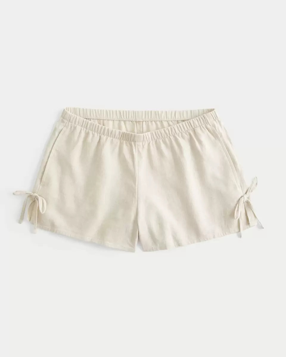 Dina nya favoritshorts är mjuka och bekväma och har söta rosettdetaljer. Bandad låg midja, mjukt tyg i linneblandning, fickor. Importerad.