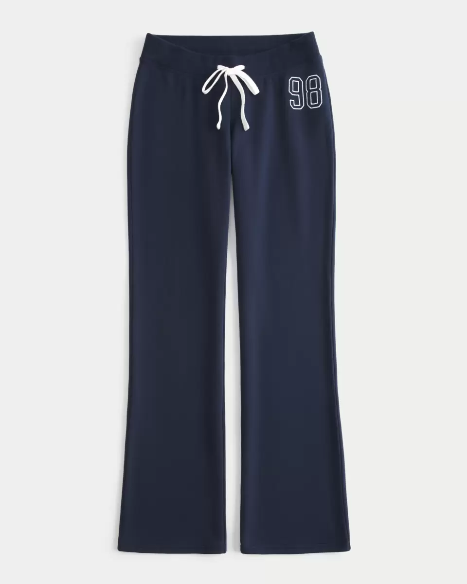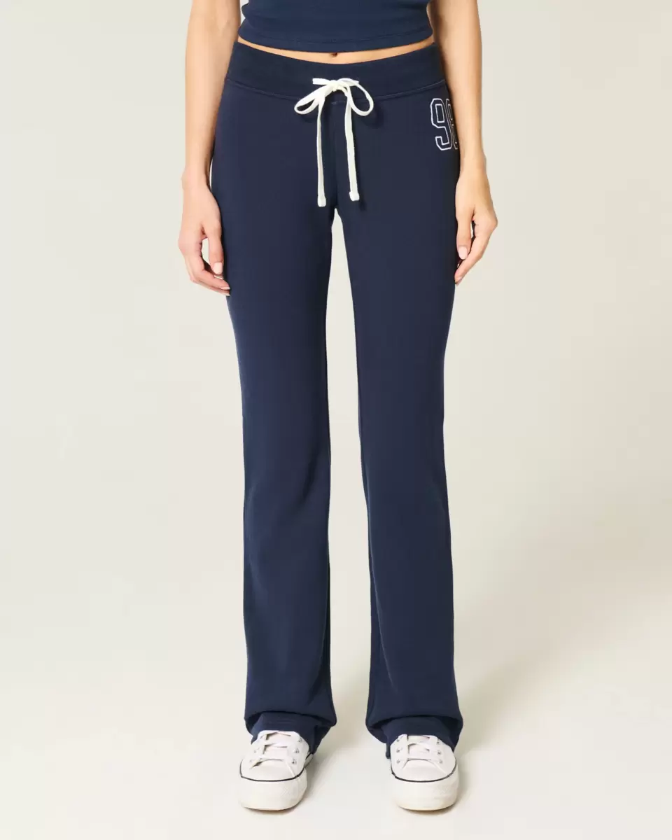 Supermjuka träningsbyxor i fleece designade med smala ben och stövelfåll. Lågt dragsko i midjan, broderad siffergrafik. Importerad.