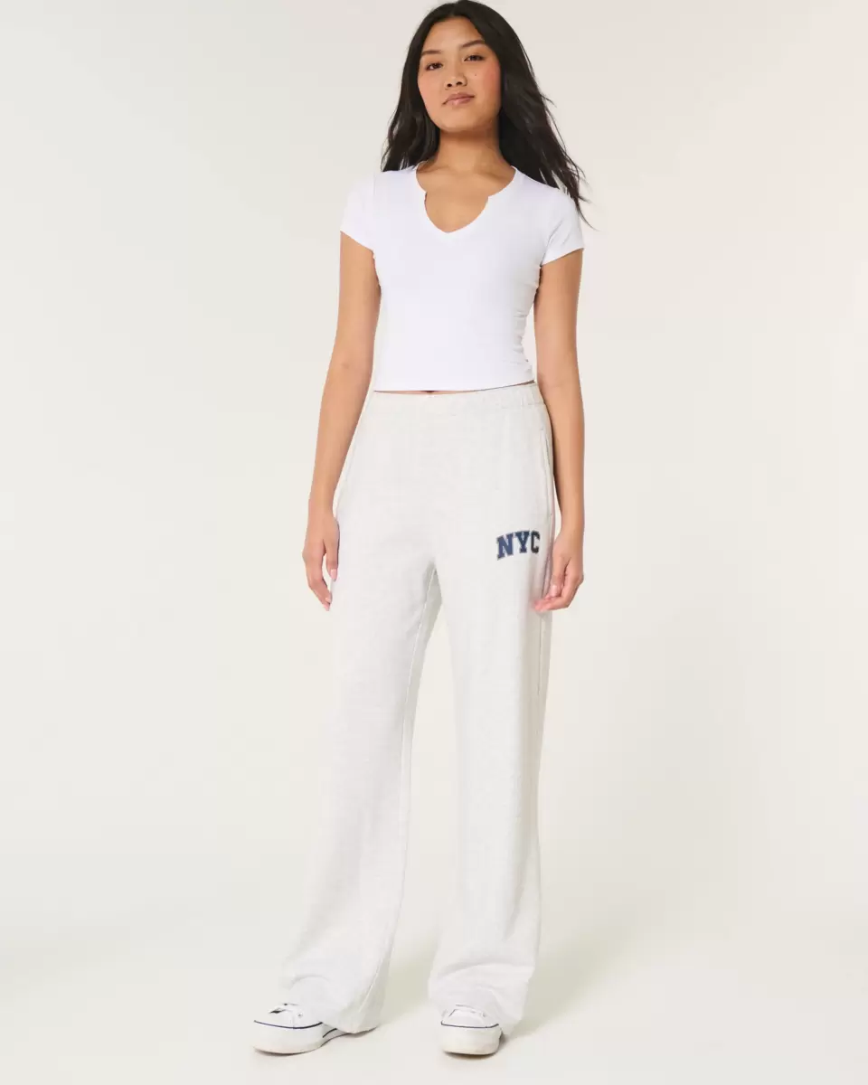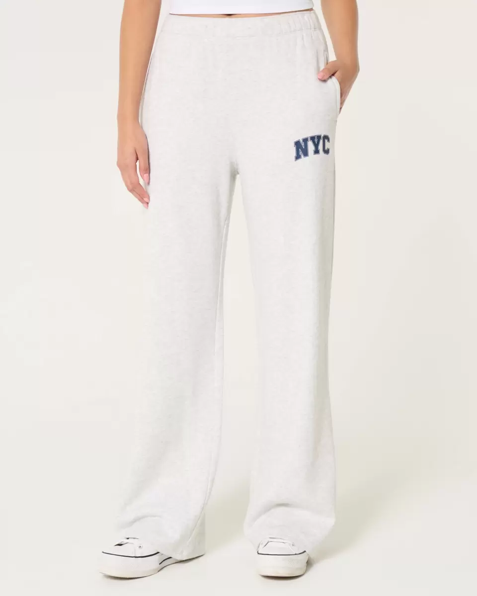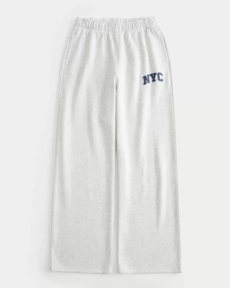 Supermjuka fleecebyxor med NYC-tryck, mjuk bandad midja och fickor. Byxor med vida ben.