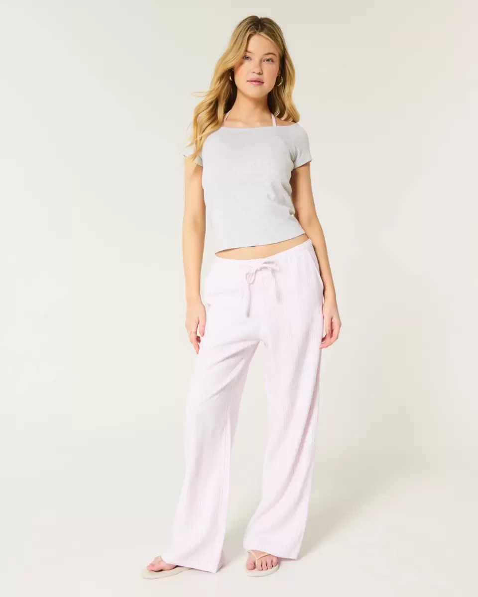 Söta och bekväma byxor i en mjuk linneblandning, designade med säckiga ben och justerbar höjning och dragsko i midjan. Fickor. Importerad.