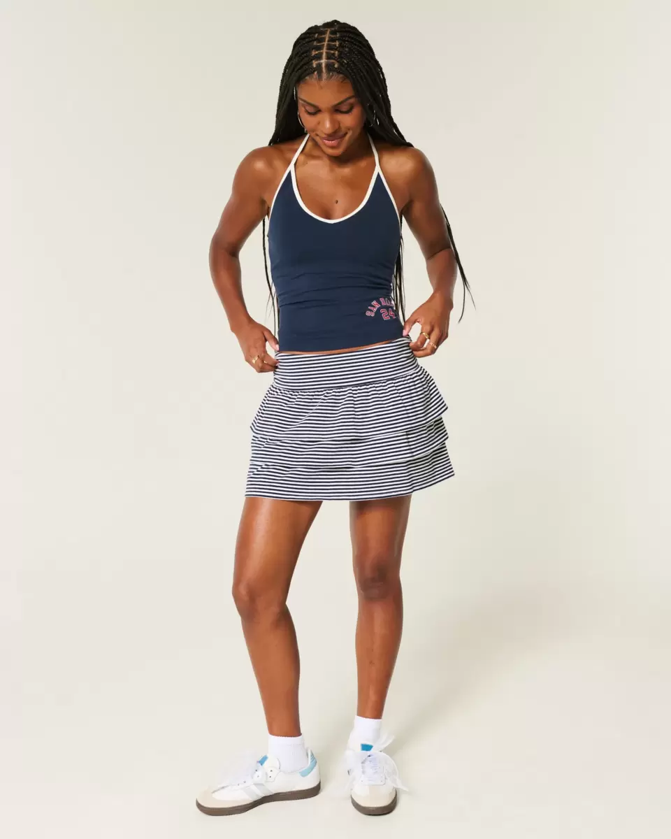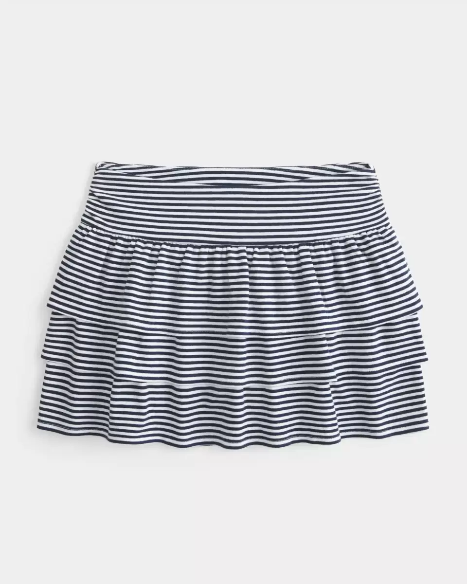 Detta söta minikort är designat med en medelhög midja och har dolda stickade shorts med en telefonficka på sidan. Mjukt och stretchigt stickat tyg, ganska volangiga nivåer. Importerad.
