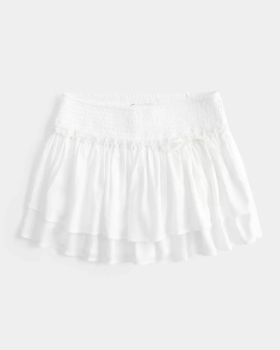Ett snyggt och supermjukt minibyxa designat med medelhög midja och volanger. Mjuk smockad midja med snygg spetsdetalj, dolda stickade shorts. Importerad.