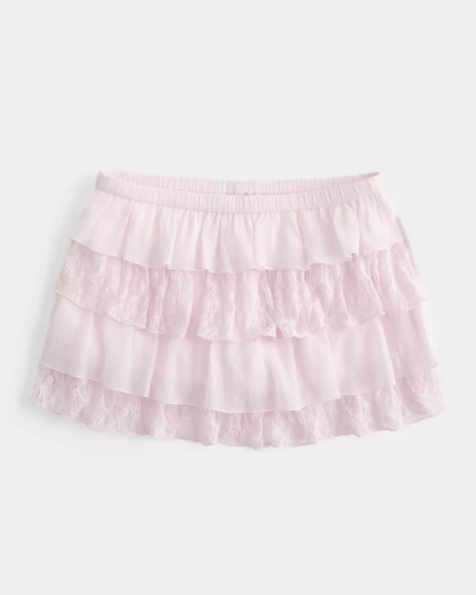En söt och bekväm minibyxa med inbyggda shorts och ett midjeband. Nivådetaljer med chiffong och spetstyg. Importerad.