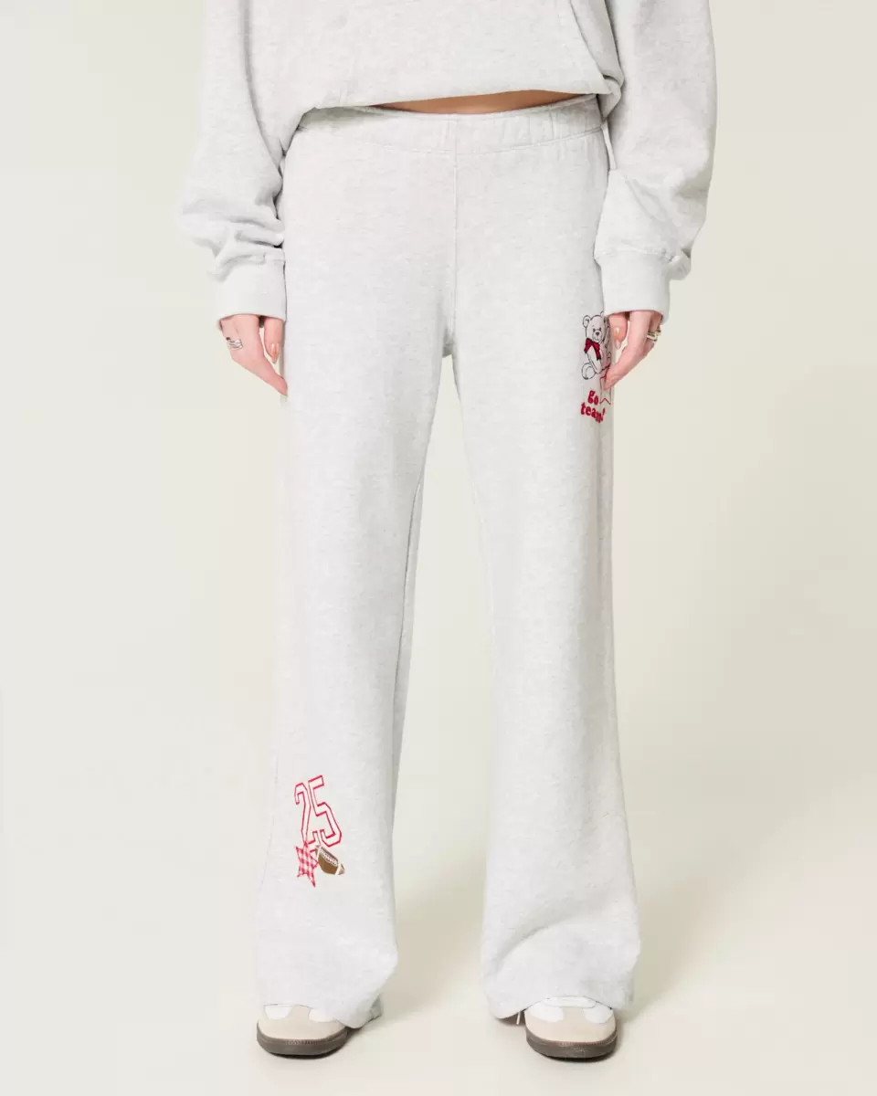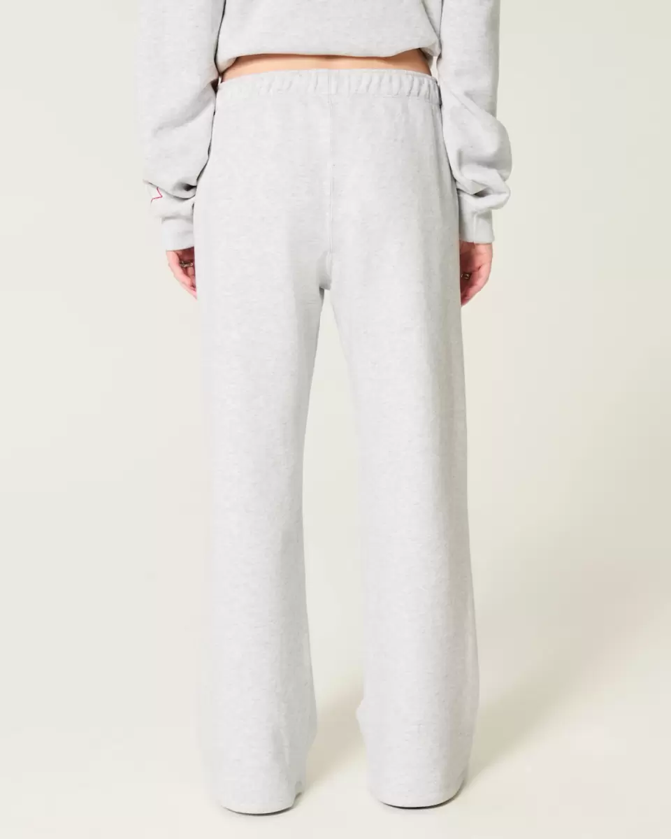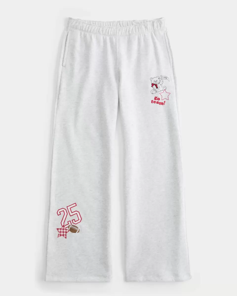 Supermjuka träningsbyxor i fleece designade med breda ben och bandad, låg midja. Fickor, sportig grafik, applikationer och broderier. Importerad.