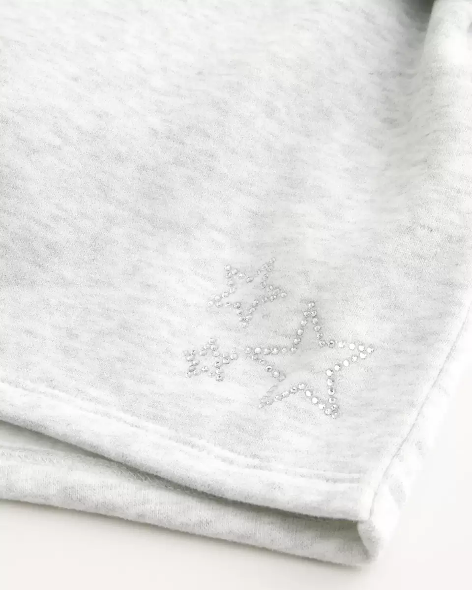 Söta och supermjuka fleece-minishorts med söt strass-stjärngrafik. Mjuk midja med dragsko i midjan som går att vika över till låg. Importerad.