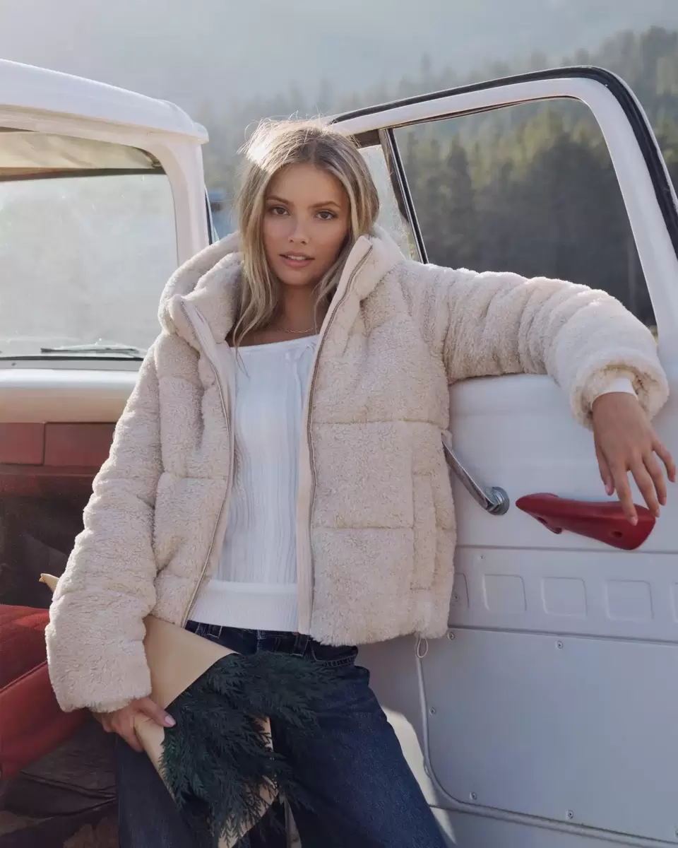 Din nya favoritjacka har quiltade kanaler, fickor fram, stängning med dragkedja och innerfickor. Supermjuk sherpa exteriör, helfodrad, avtagbar huva. Importerad.