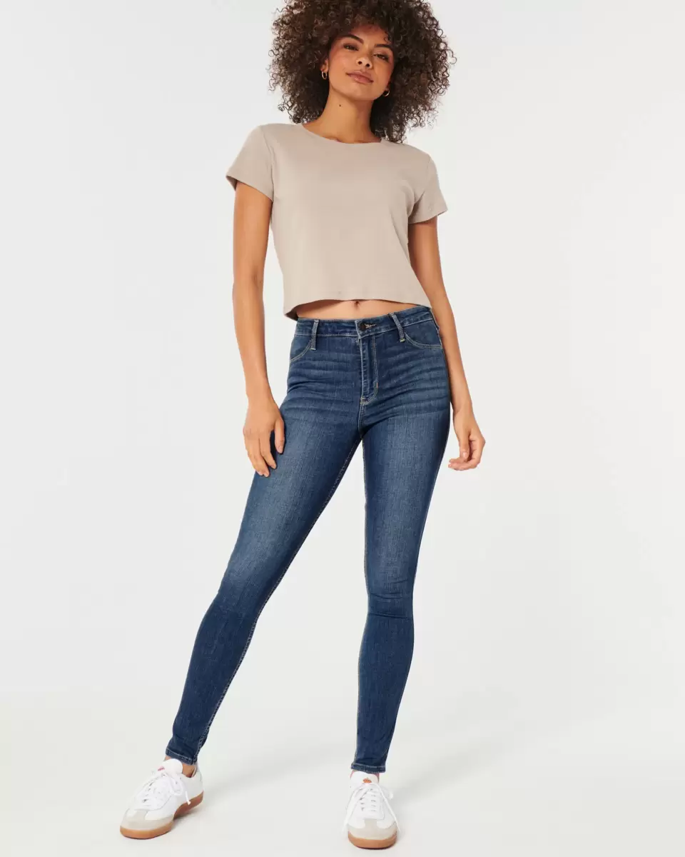 Den här stilen passar som en legging, ser ut som ett jeans. Designad i Advanced Stretch denim, med en smickrande hög midja, mörk tvätt, blekning och morrhår.