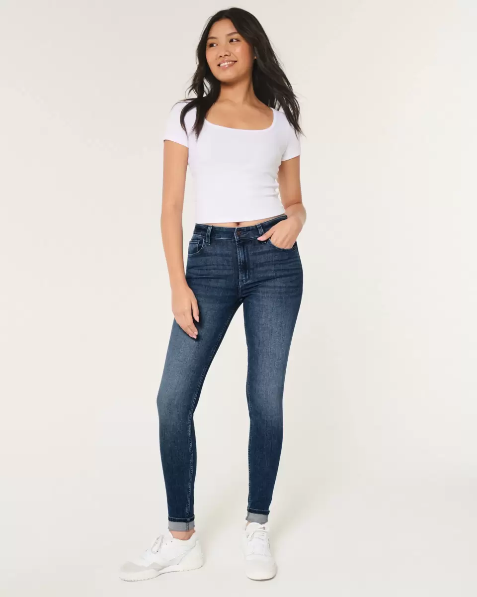 De här mellantvättade supersmala jeansen är designade i vår karaktäristiska slim fit och har blekning och morrhår. Hög midja, ärmslut, stretch. Importerad.