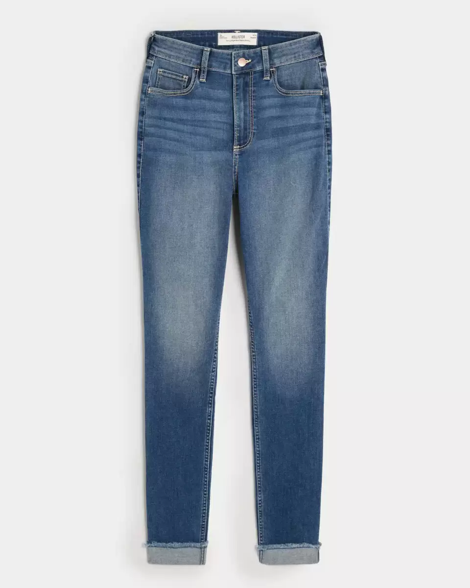 passform, dessa medeltvättade supersmala jeans har blekande och kurvig midja, muddfåll, importerad.