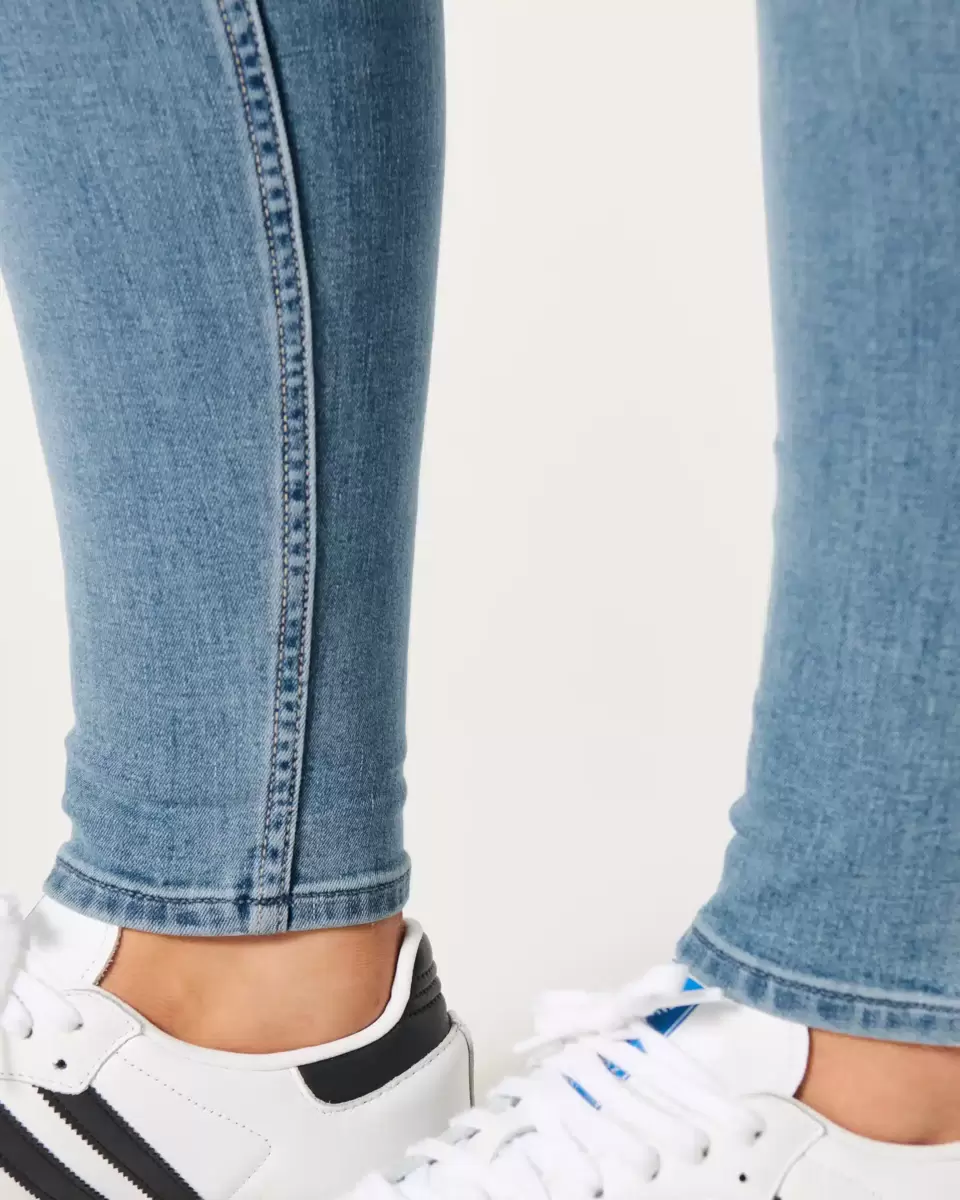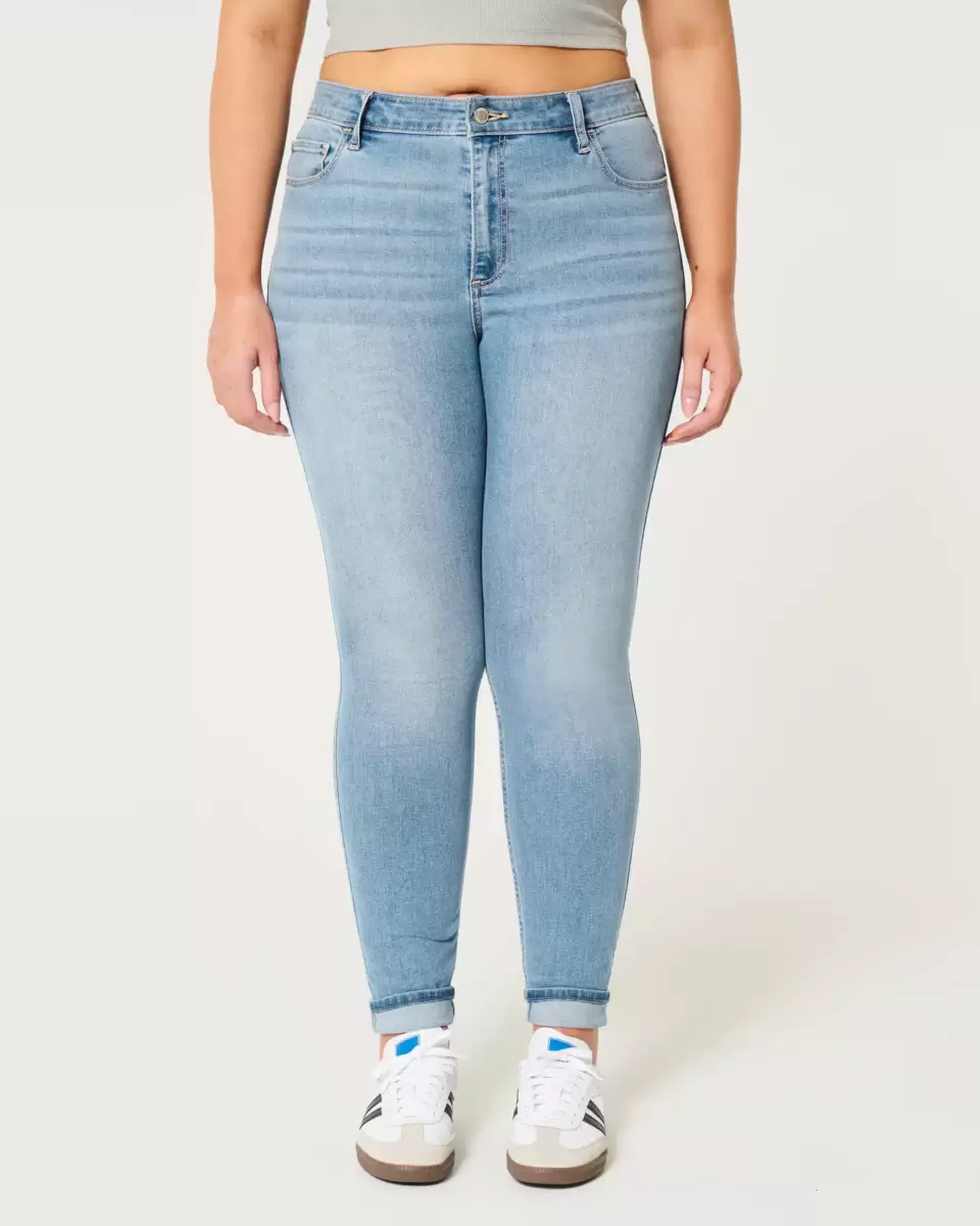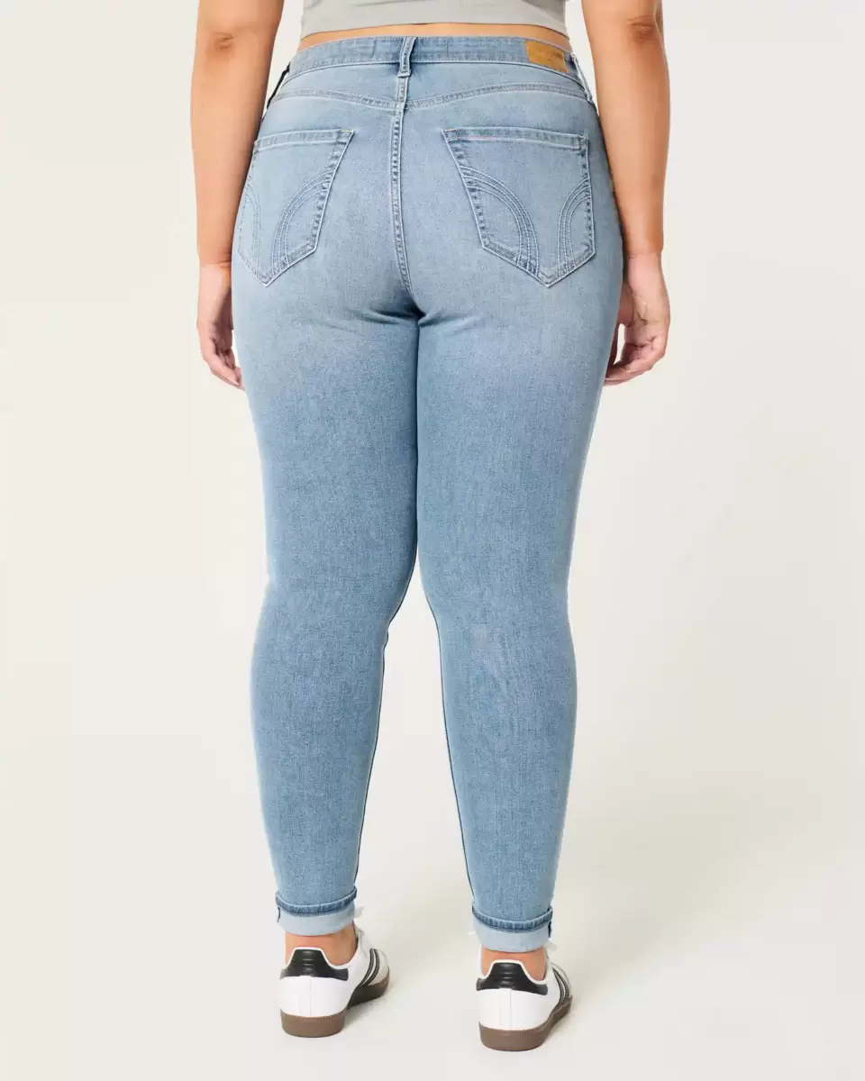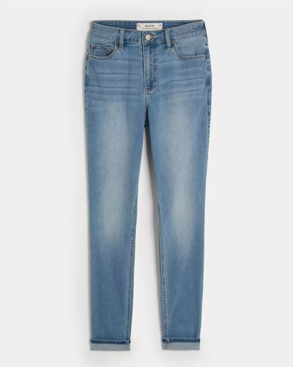 passform, dessa medeltvättade skinny-jeans har böjda fållar, böjd midja med kurvig midja, stretch. ren