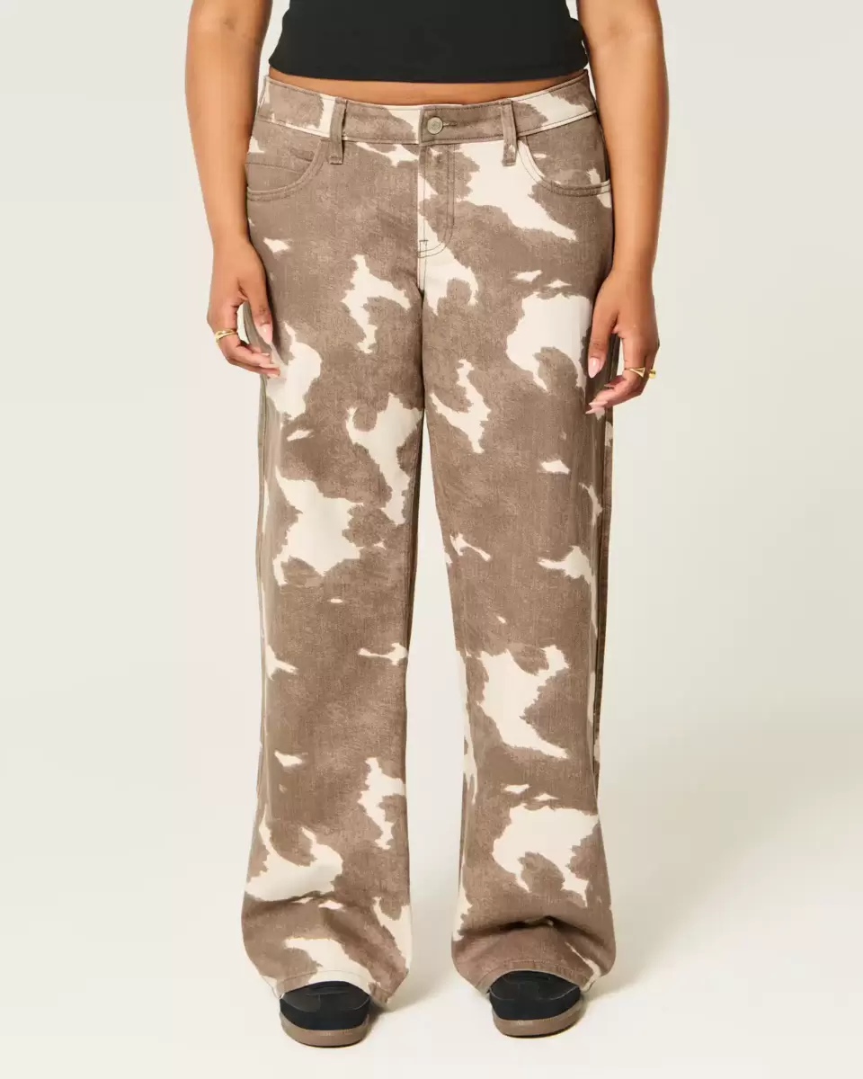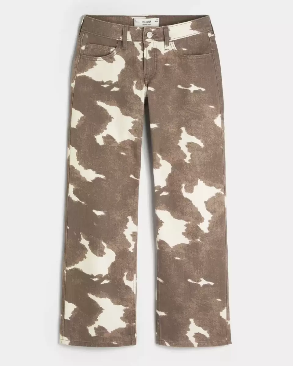 Bekväma denimjeans designade med en låg midja och påsiga ben. All-over ko-tryck. Importerad.