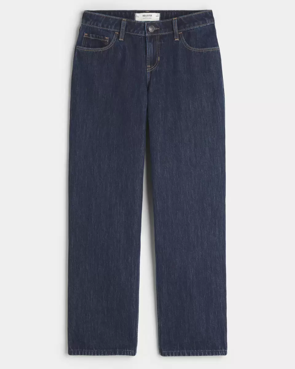 Klassiska jeans i mörk tvätt, designade med låg midja och lösa ben.