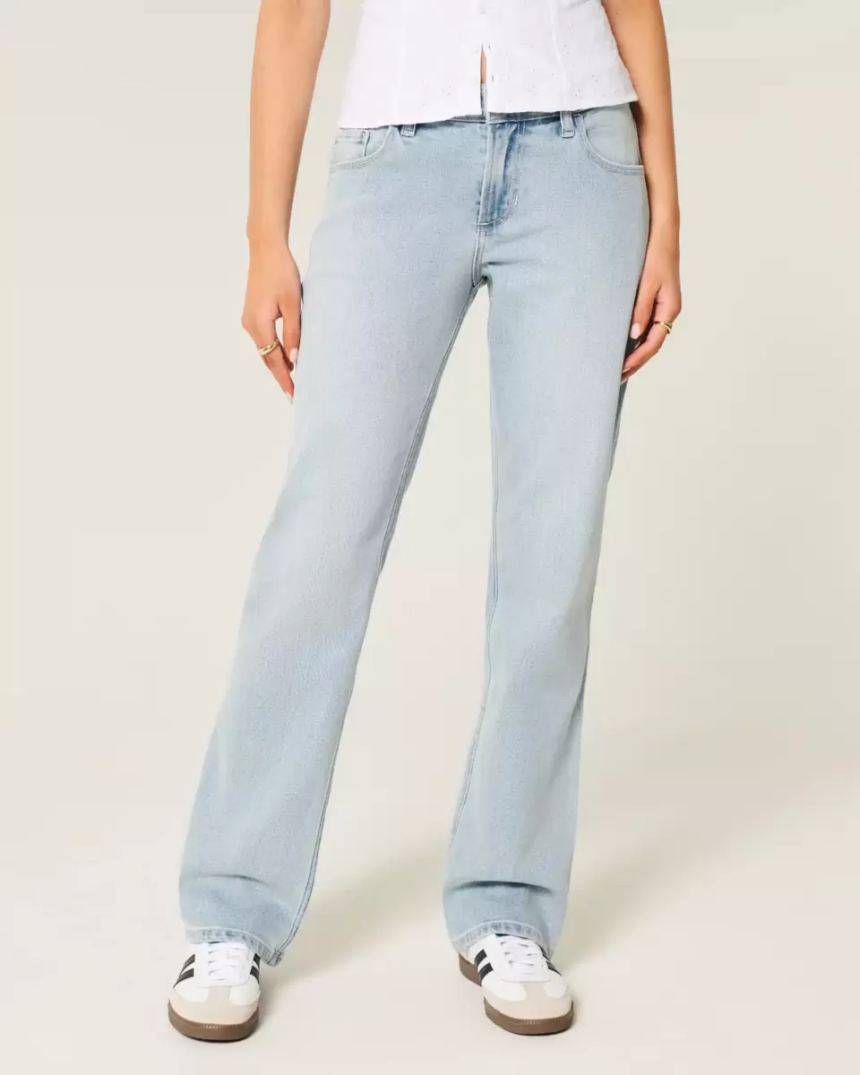 Bekväma denimjeans designade med en låg midja och avslappnade raka ben. Lätt tvätt. Importerad.