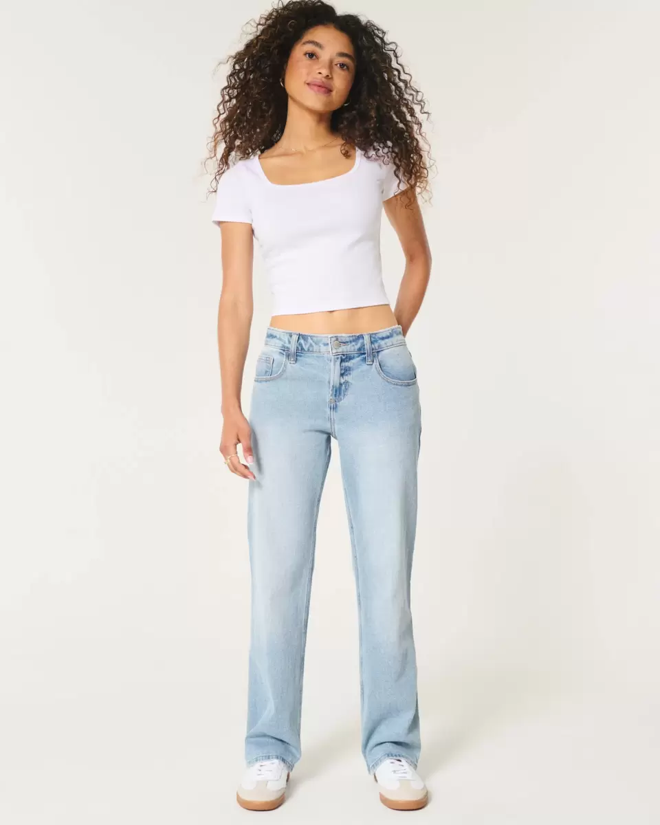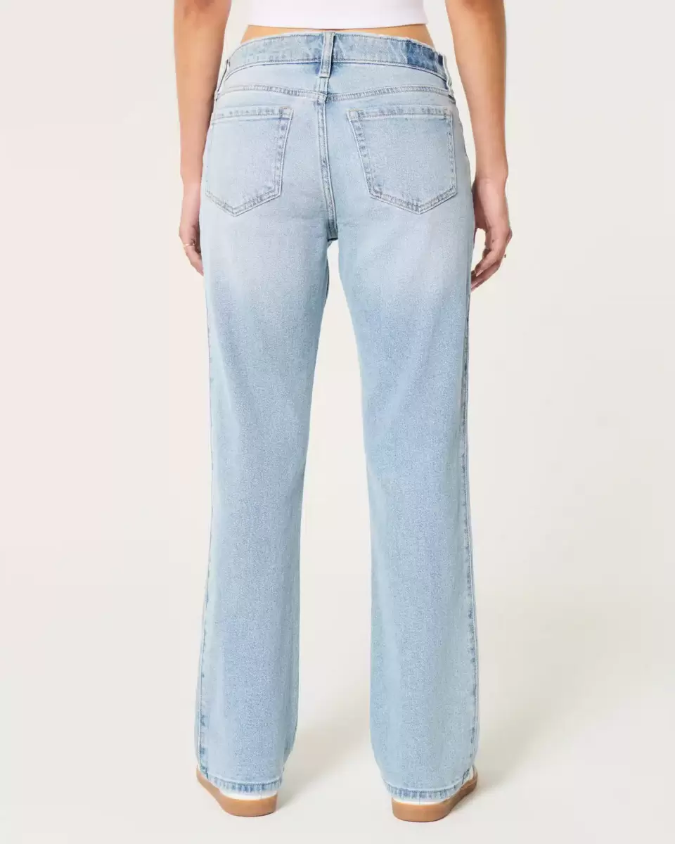 Bekväma jeans i lätt tvätt, designade med avslappnade raka ben. Blekning genom låret, låg midja. Importerad.