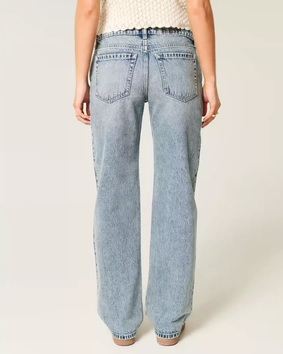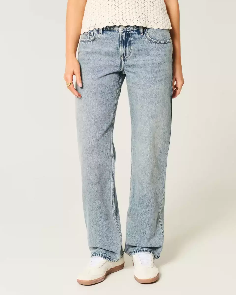 Bekväma denimjeans designade med en låg midja och lösa ben. Medeltvättad denim med blekning och morrhår. Importerad.