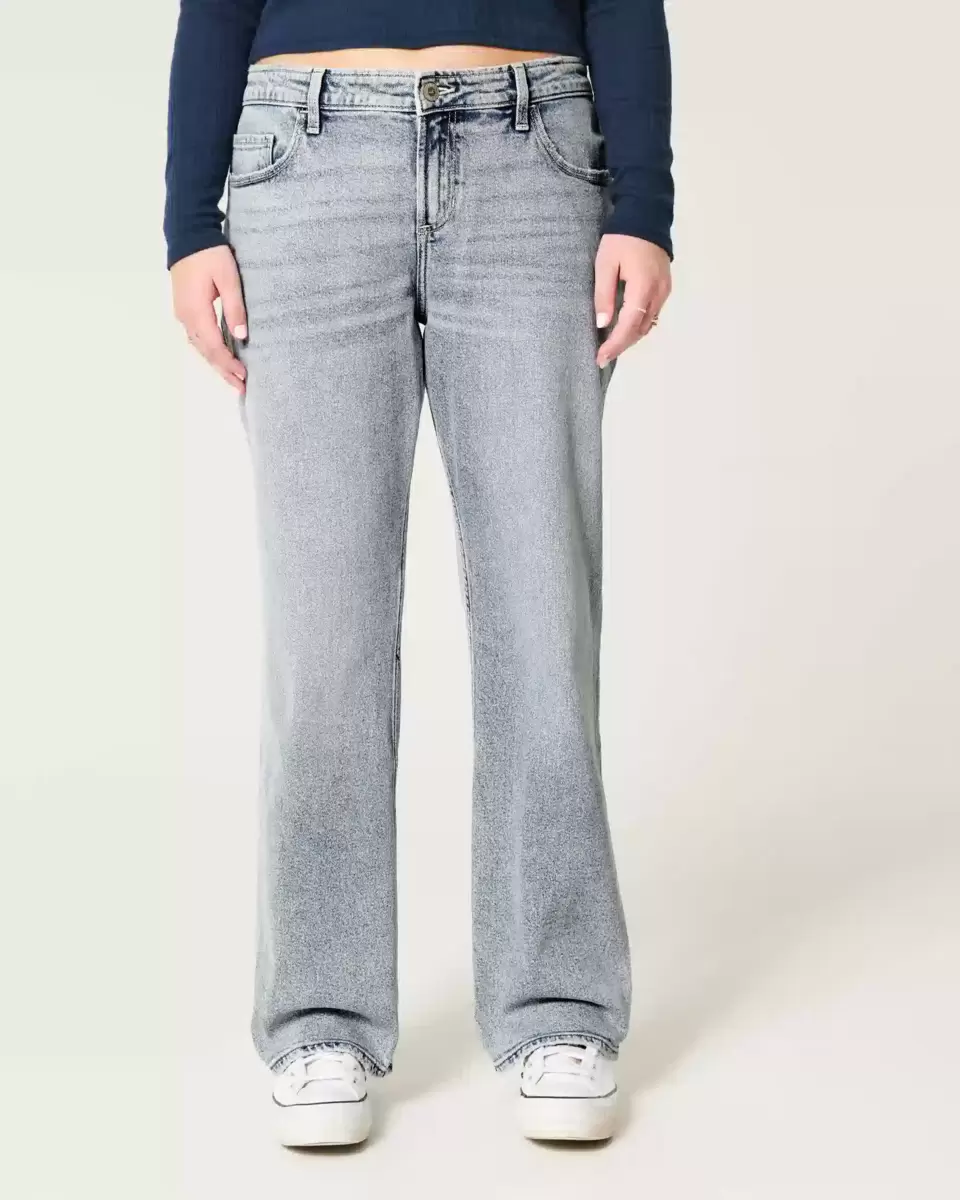 Ultrabekväma jeans i Vintage Stretch-denim, designade med en låg midja och avslappnade raka ben. Medium tvätt med blekning och morrhår. Importerad.