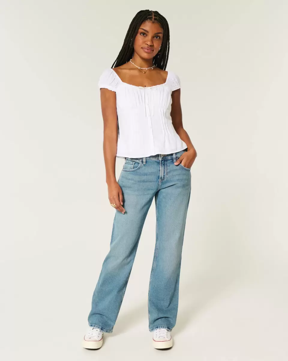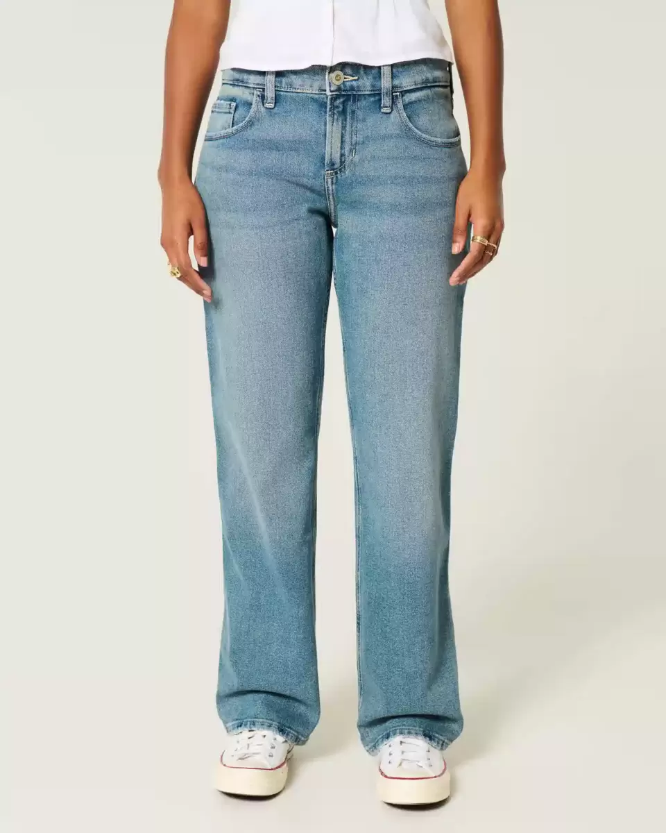 Low-Rise Medium Wash Relaxed Straight Jeans