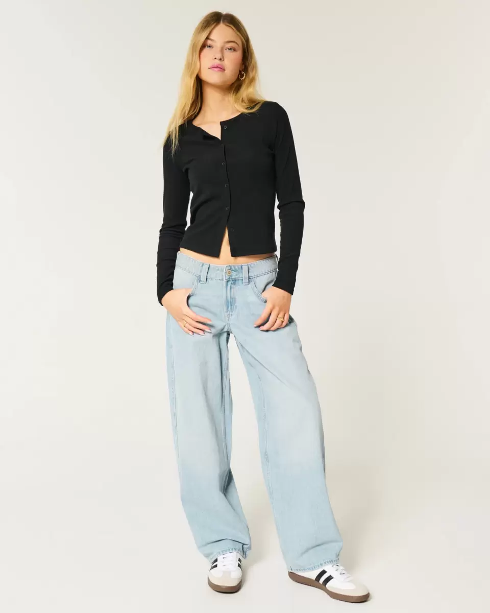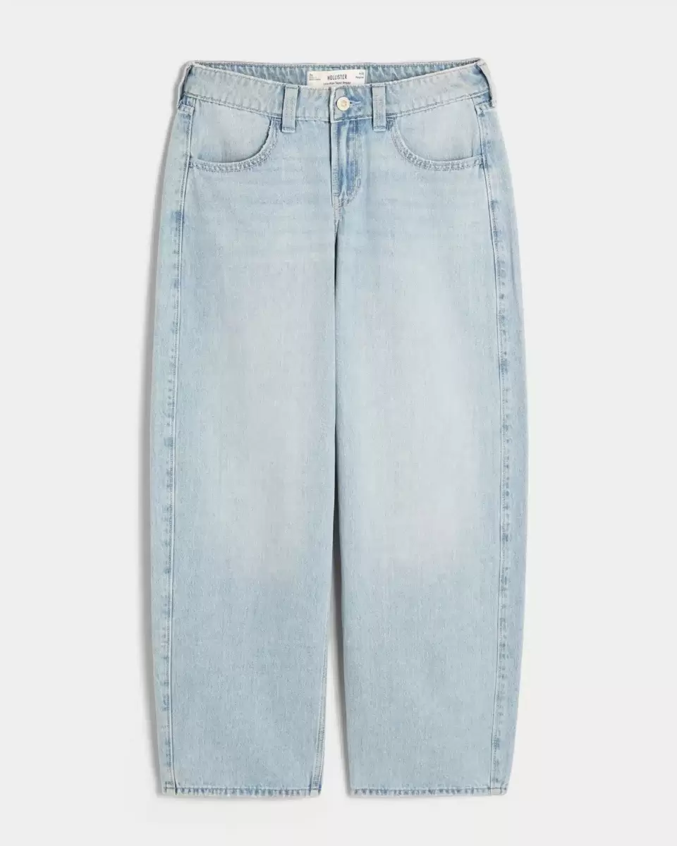 Low-Rise Medium Wash Tapered Baggy Jeans
