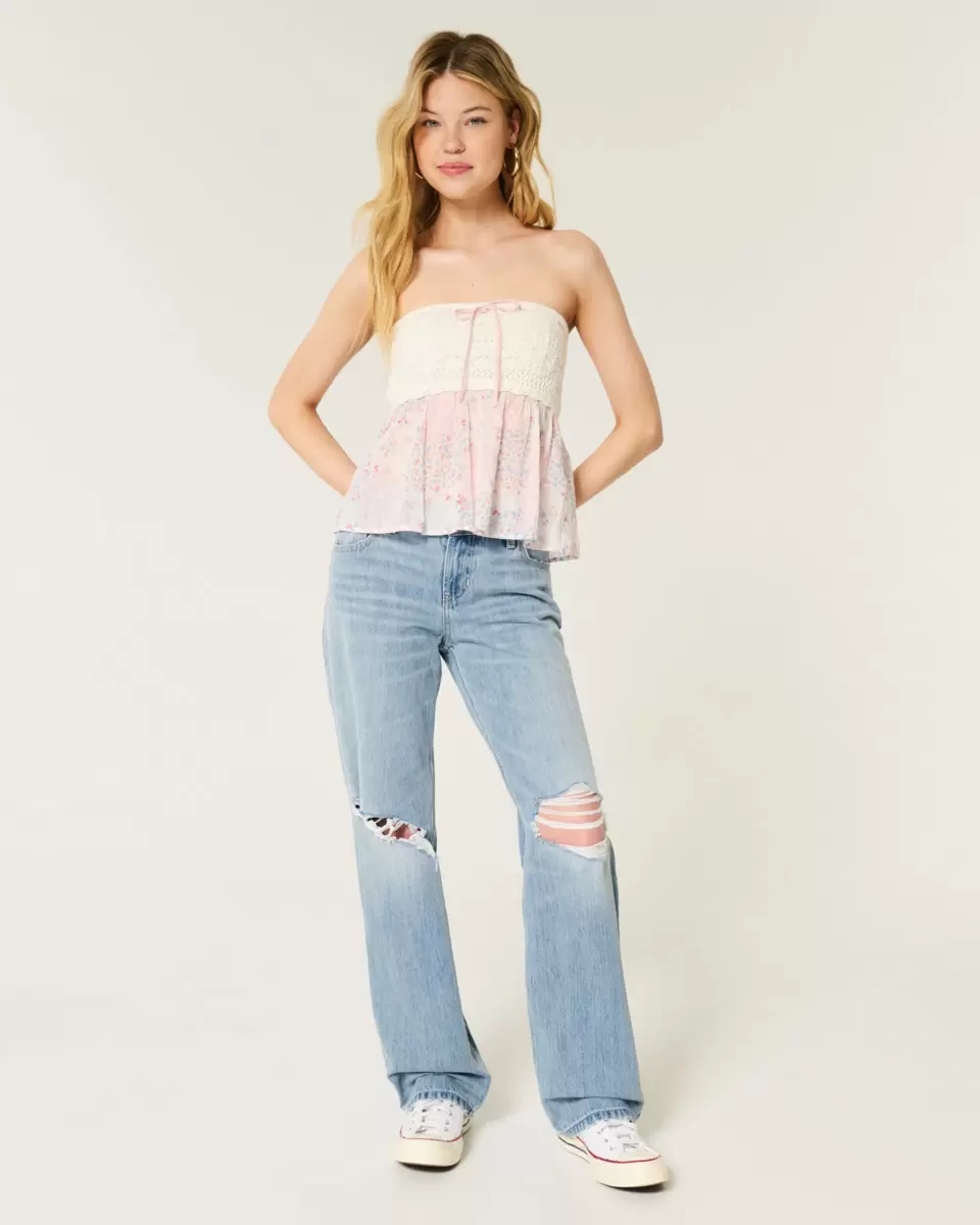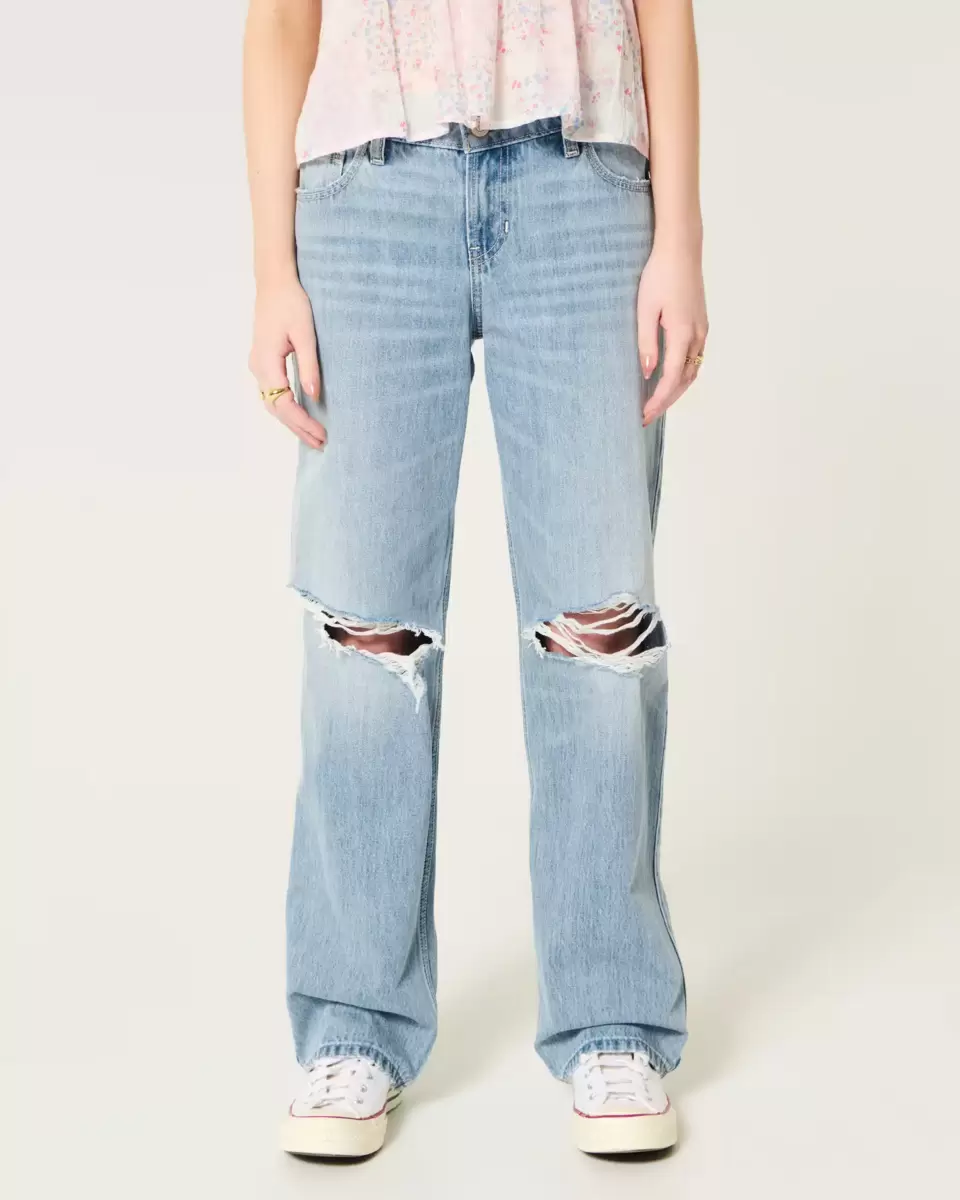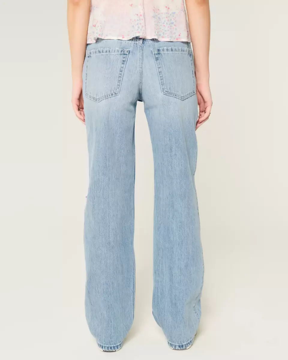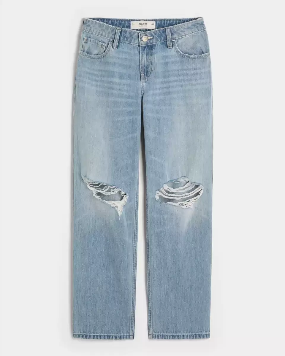 Söta och bekväma jeans i lätt tvätt med slitna detaljer, blekning och morrhår. Lösa ben, låg midja. Importerad.