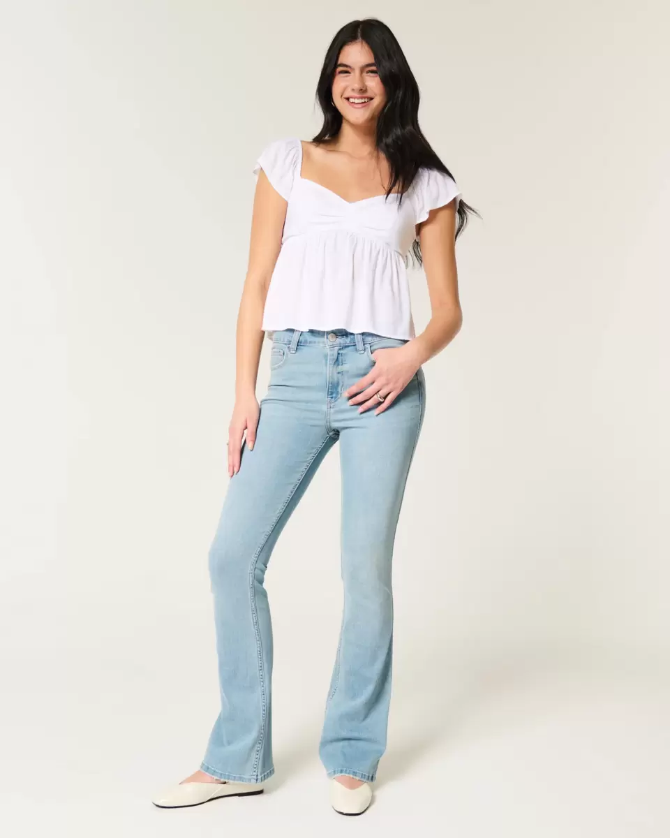 Söta och bekväma jeans i lätt tvätt, designade med en smickrande medelhög midja, smala ben och stövelfåll. Blekning och morrhår, Soft Stretch denim. Importerad.