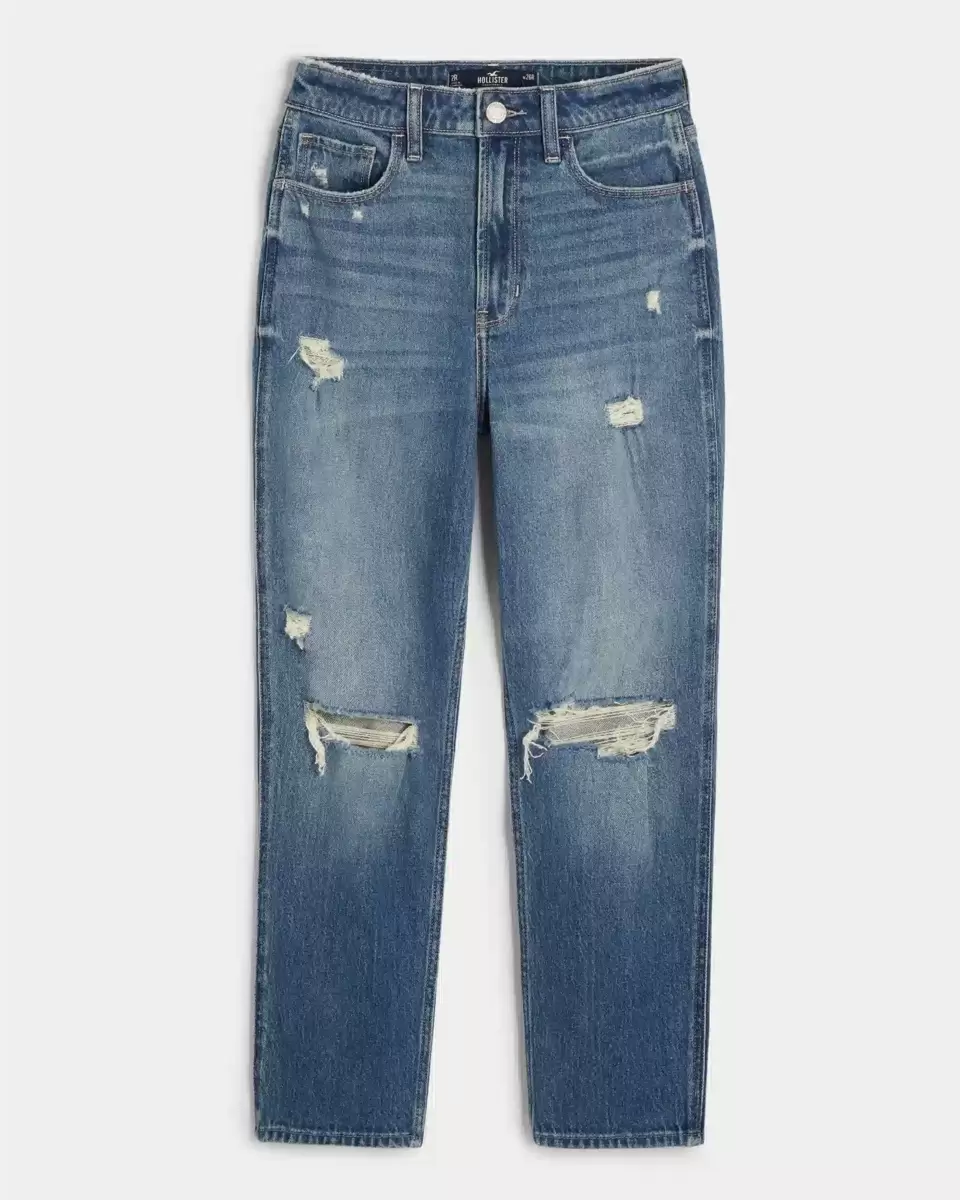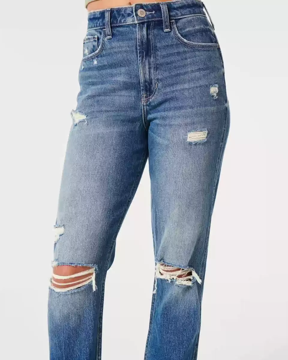 Avslappnade genom låret och avsmalnande från knä till ankel, dessa slitna mom-jeans har Vintage Stretch-denim i medeltvätt med slitna detaljer, blekning och morrhår. Kan bäras med eller utan manschett! Importerad.