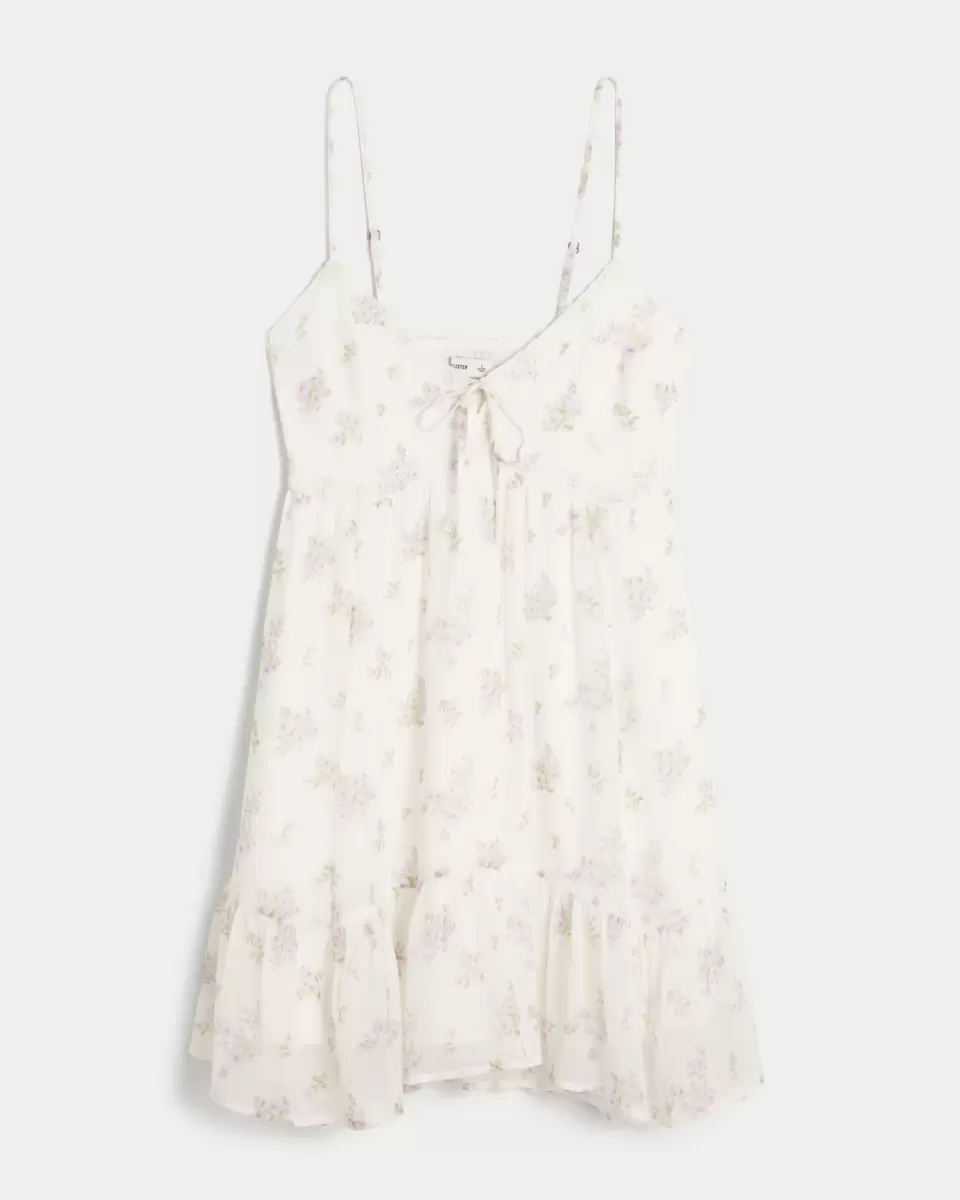 Denna vackra babydoll-klänning är gjord av supermjukt chiffongtyg. Spetskant, bh-täckande ryggdetalj, asymmetrisk fåll, fickor, justerbara remmar, rosettdetalj i mitten av halsen, volangkant. Importerad.