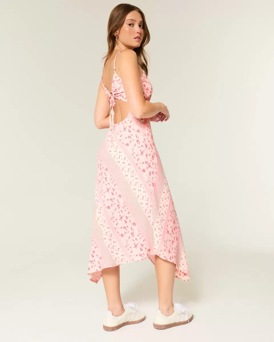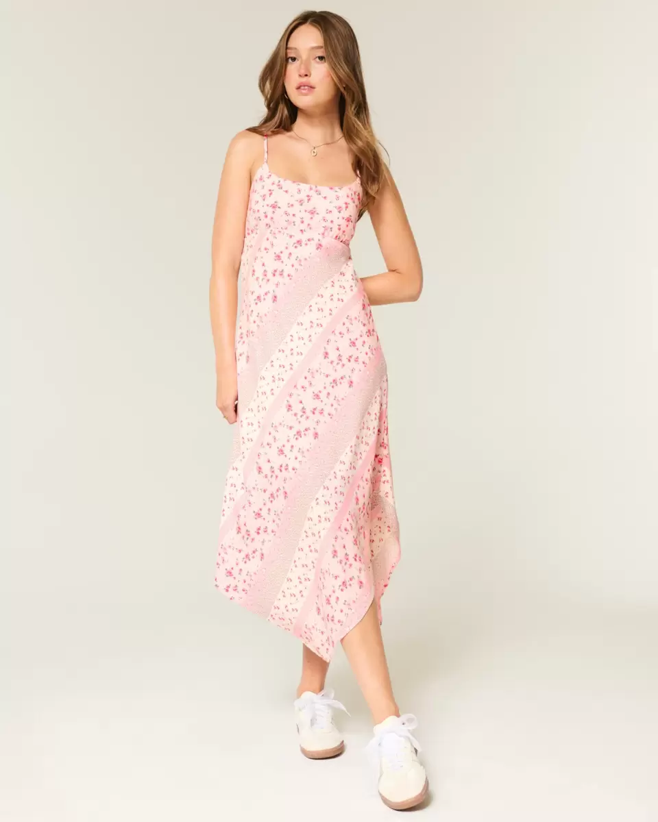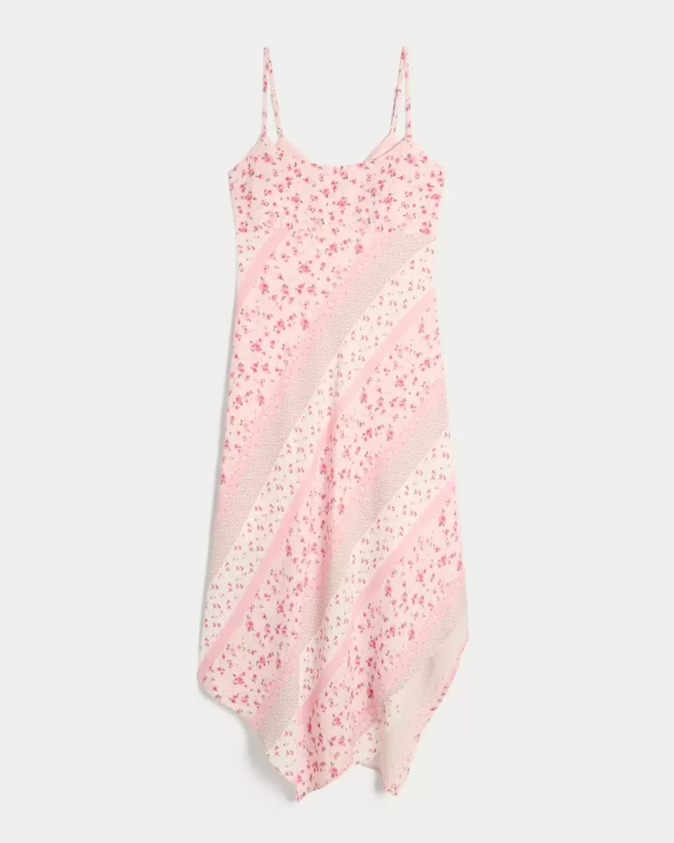 Flytig och supermjuk, denna midi-lång klänning har en asymmetrisk fåll och justerbara axelband. Importerad.
