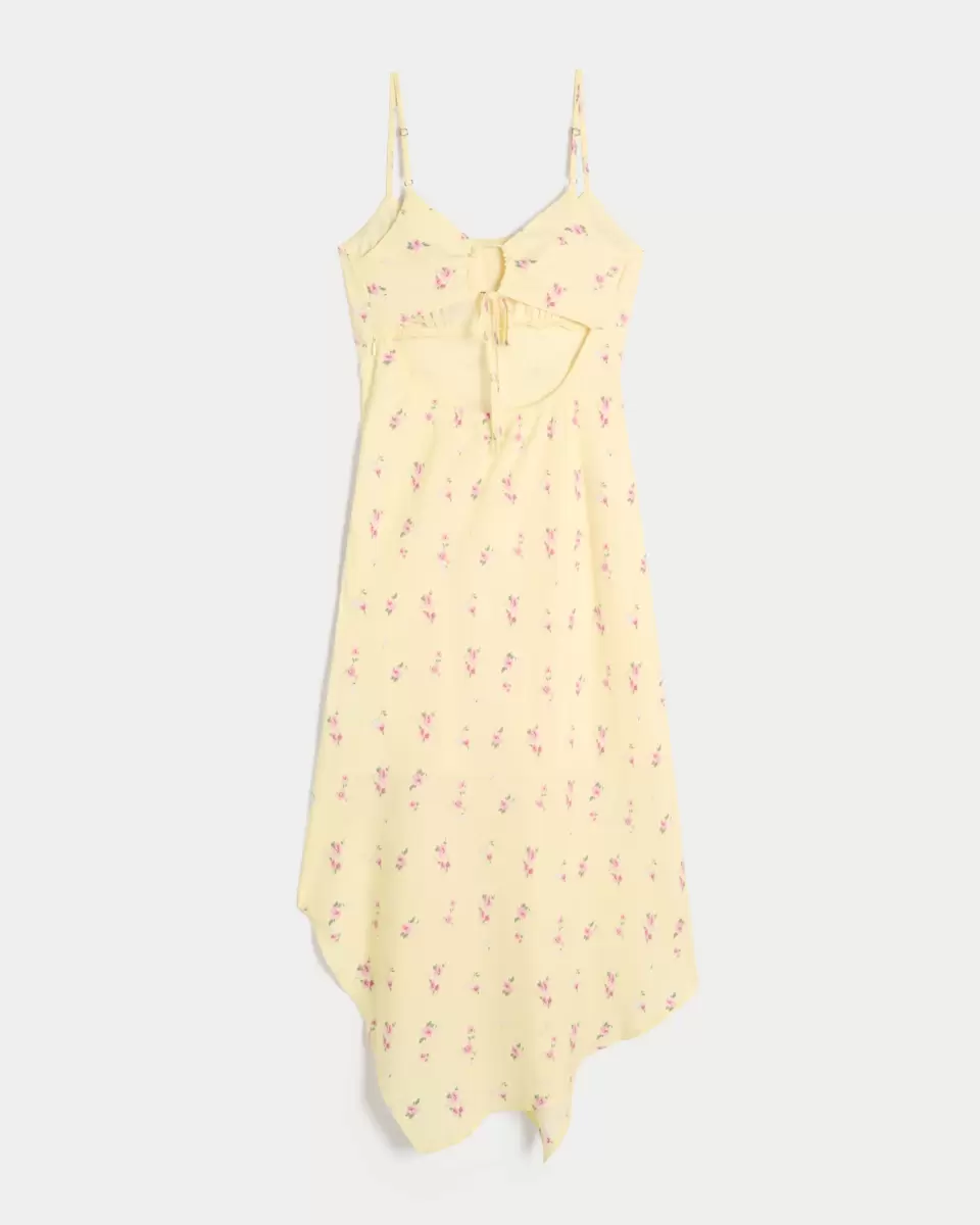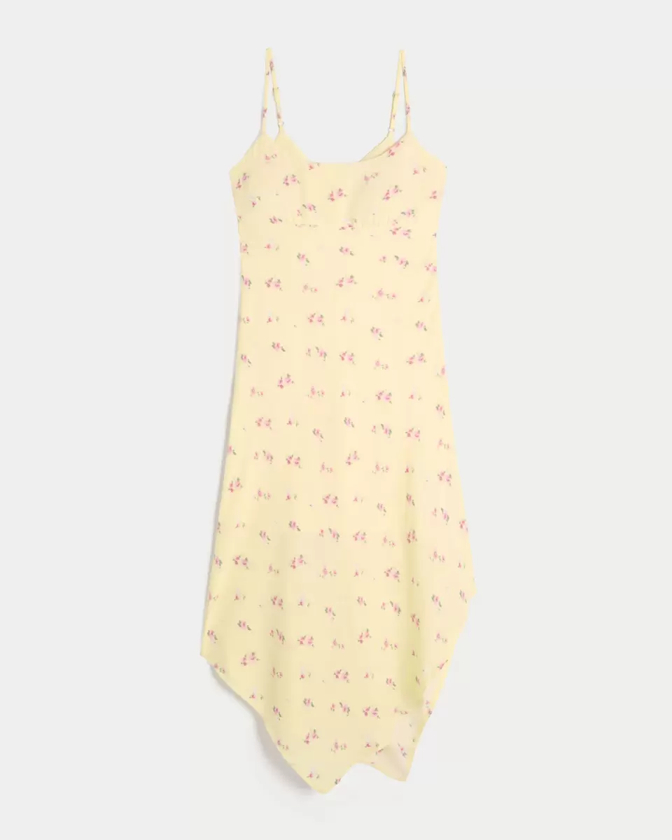 Flytig och supermjuk, denna midi-lång klänning har en asymmetrisk fåll och justerbara axelband. Importerad.