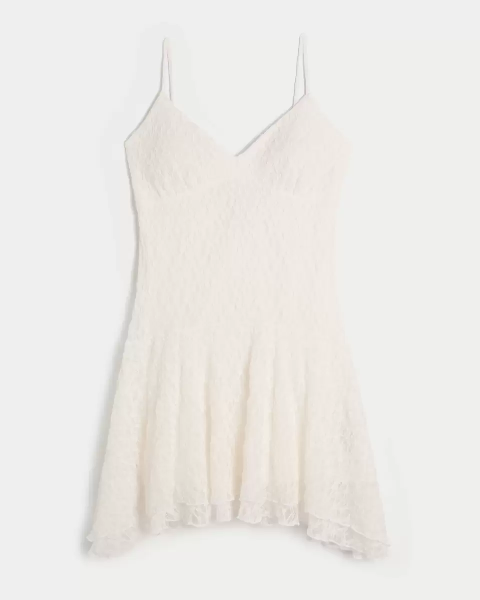 Denna roliga klänning är gjord av vackert och supermjukt spetsmaterial och har en dropp midja och asymmetrisk nederkant. Öppen ryggdetalj, justerbara remmar, avtagbara kuddar. Importerad.
