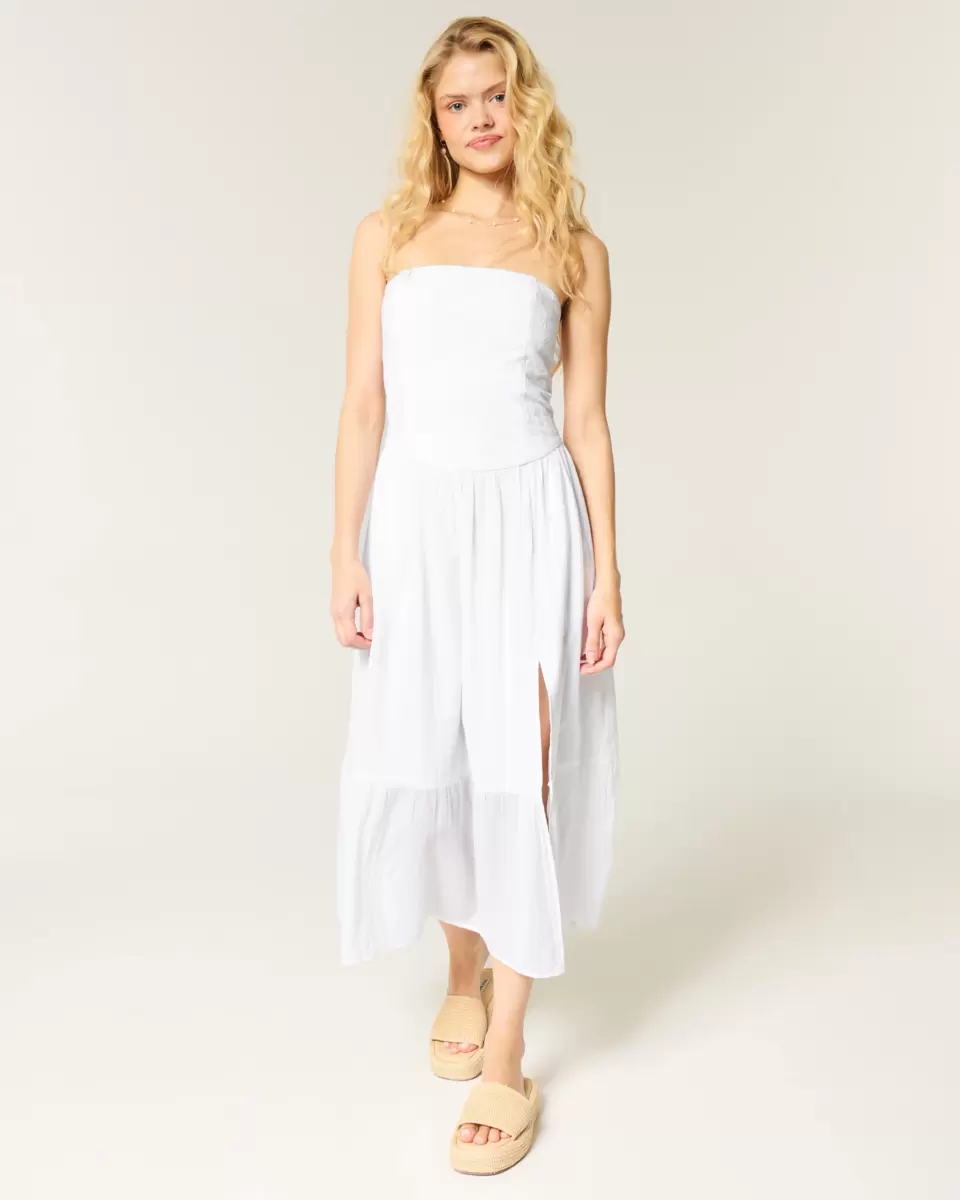 En flytande och supermjuk maxilång klänning med avtagbara axelband. Detalj med delad fåll, vackra broderade detaljer. Importerad.