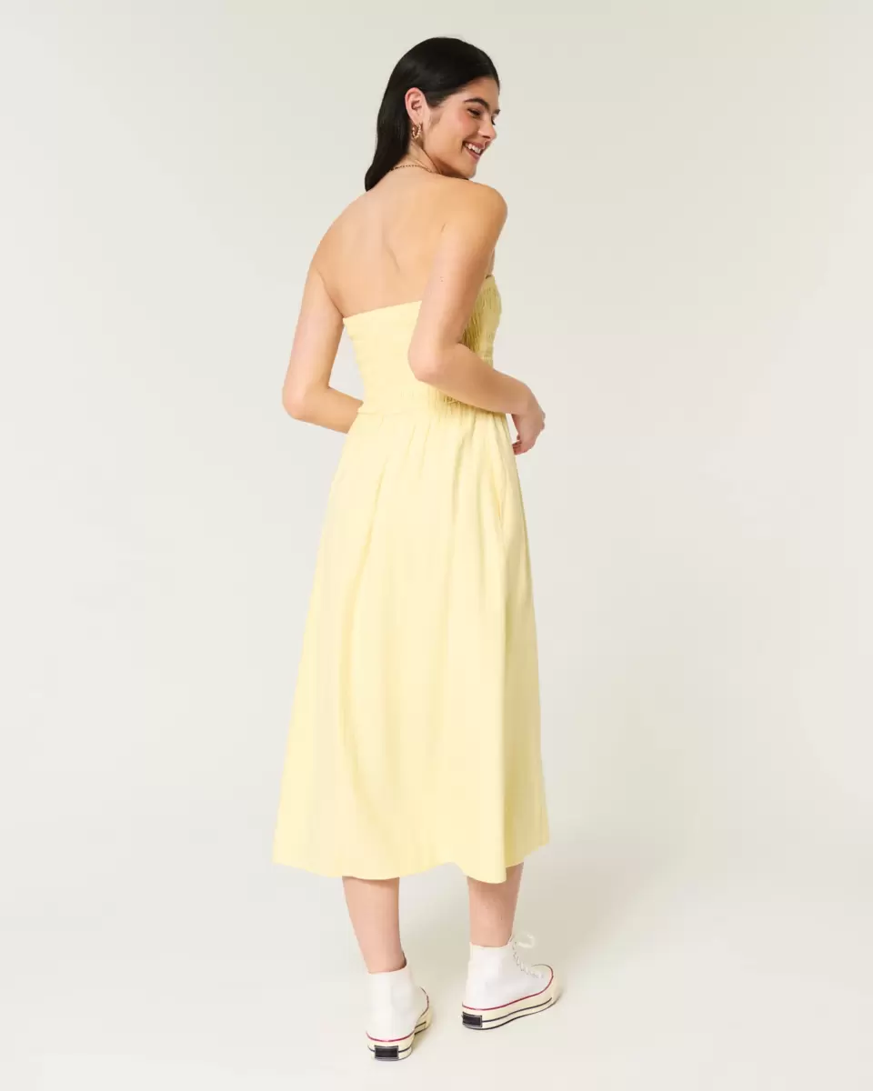 Denna axelbandslösa klänning som är lätt att ta på sig och är designad med en mjuk smockbyst och midilängd. Detalj med delad fåll, mjukt tyg i linneblandning, fickor. Importerad.