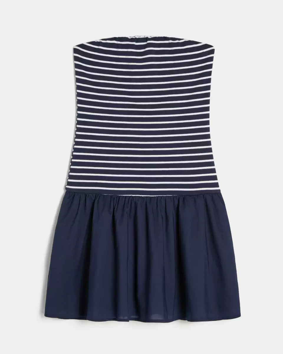 En superbekväm miniklänning med axelbandslös midja med en mjuk och stretchig bomullsblandning och en flytande kjol i vävd blandning. Inbyggda shorts, fickor. Importerad.