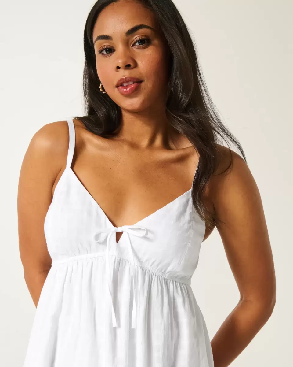 Denna mjuka och flytande miniklänning är designad med en söt babydoll-siluett och har en bh-täckande ryggdetalj och fickor. V-ringning med knytdetalj, justerbara axelband. Importerad.