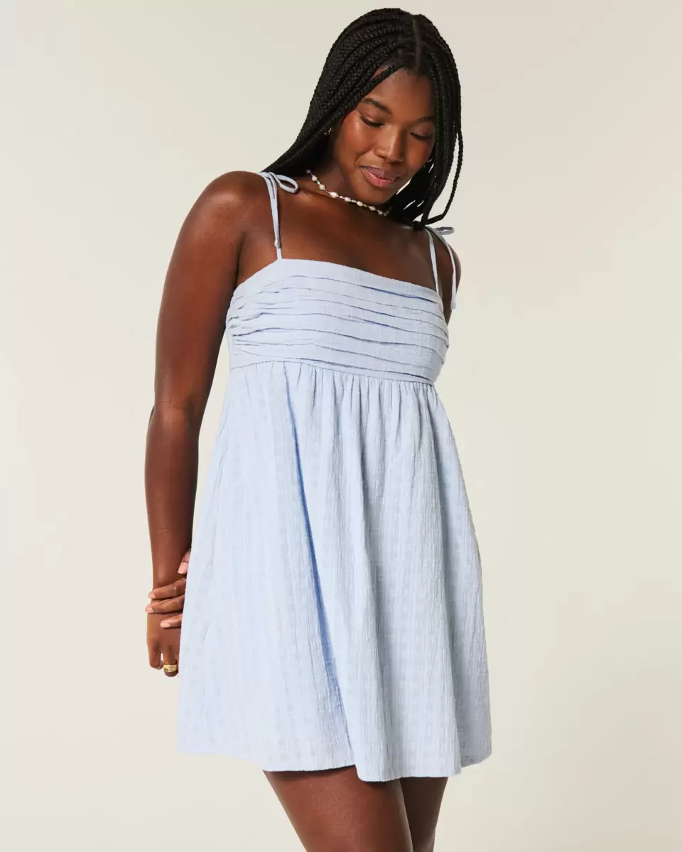 Tillverkad i supermjukt tyg med krysshacka, den här flytande miniklänningen har rynkade detaljer genom bysten och söta axelremmar. Importerad.