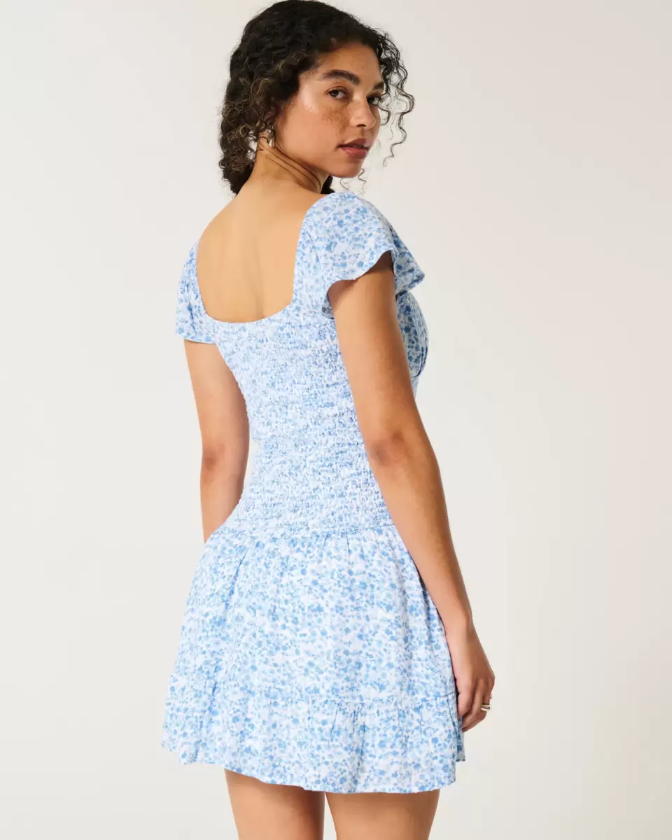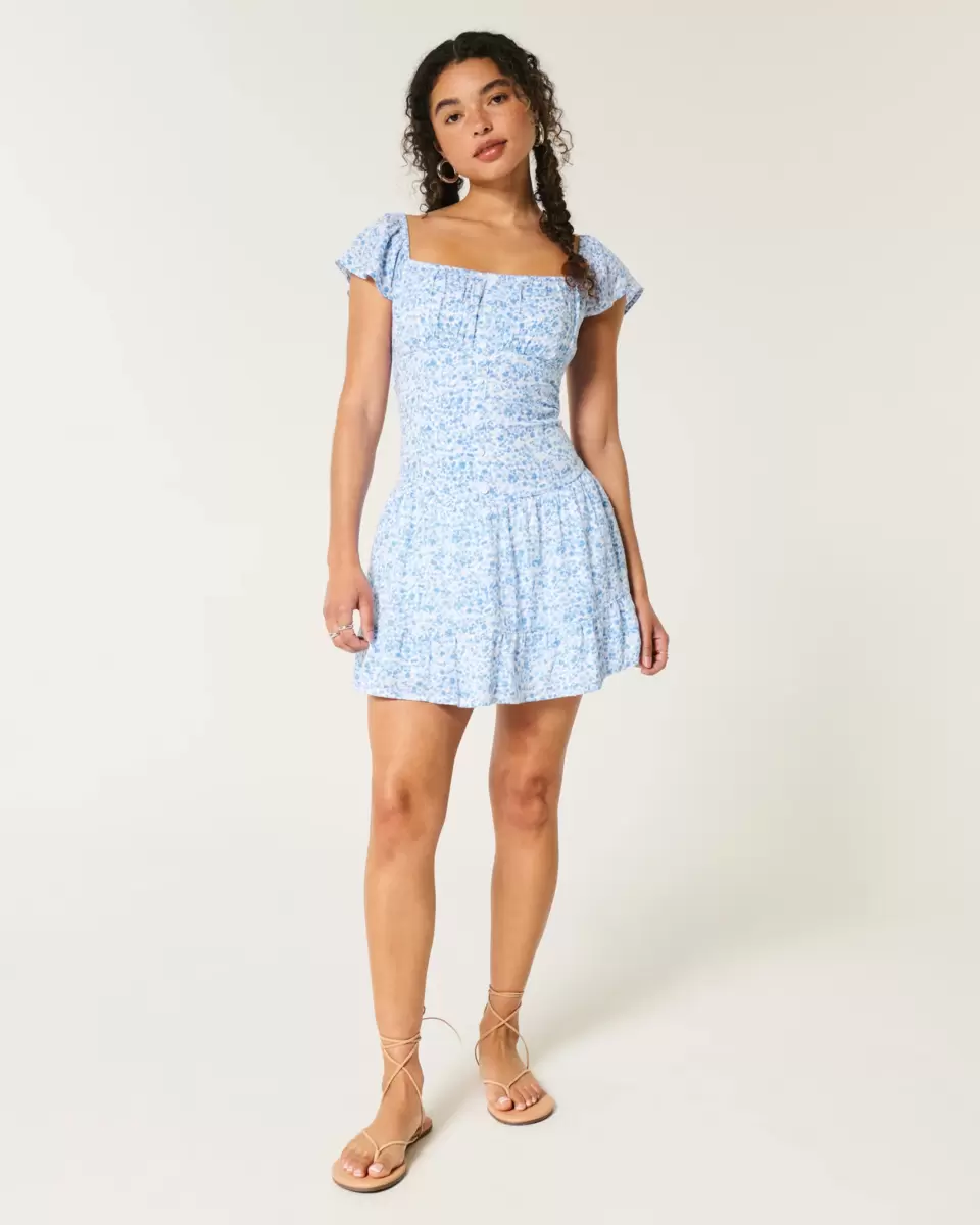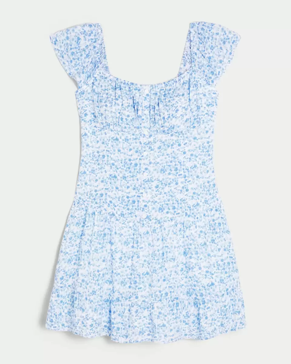Vacker och supermjuk, den här klänningen har rynkade detaljer genom bysten, fladdrande ärmar och mittknappsdetaljer. Flödig kjol, dolda shorts. Importerad.