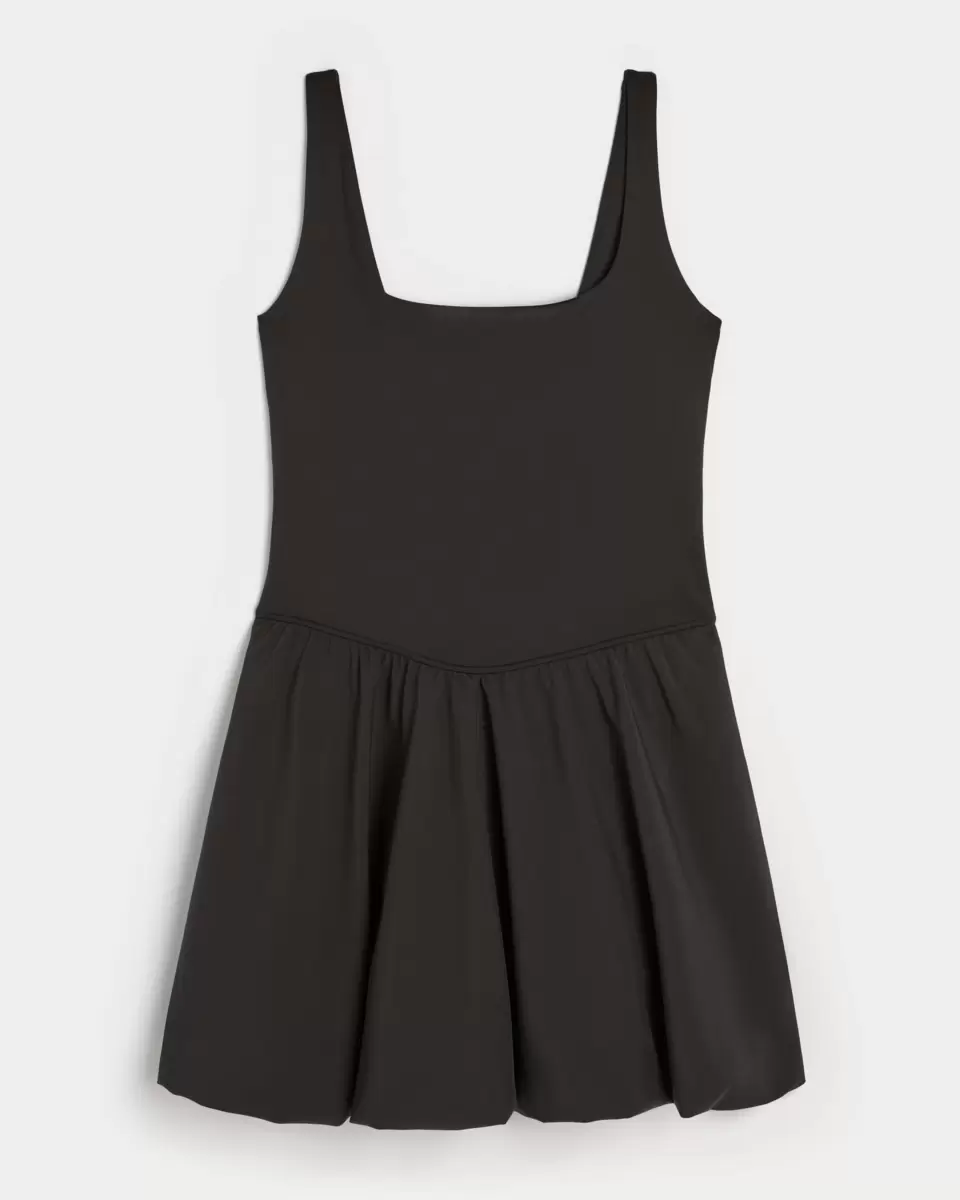 Denna söta och supermjuka bubbelklänning har en inbyggd hyll-bh med avtagbara kuddar. Volang fåll, inbyggda shorts med ficka. Importerad.