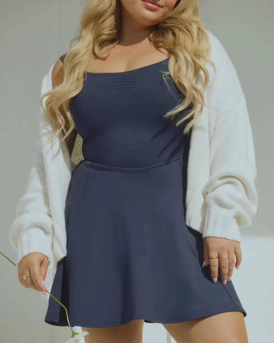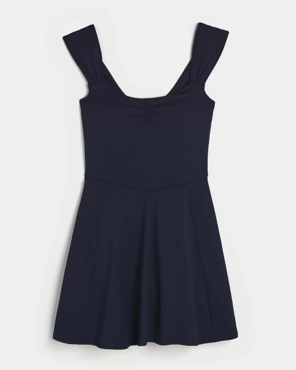Din nya favoritklänning är gjord av supermjukt aktivt tyg och har en inbyggd hyllbh med avtagbara kuddar. Inbyggda shorts med ficka, cinch-detalj fram. Importerad.